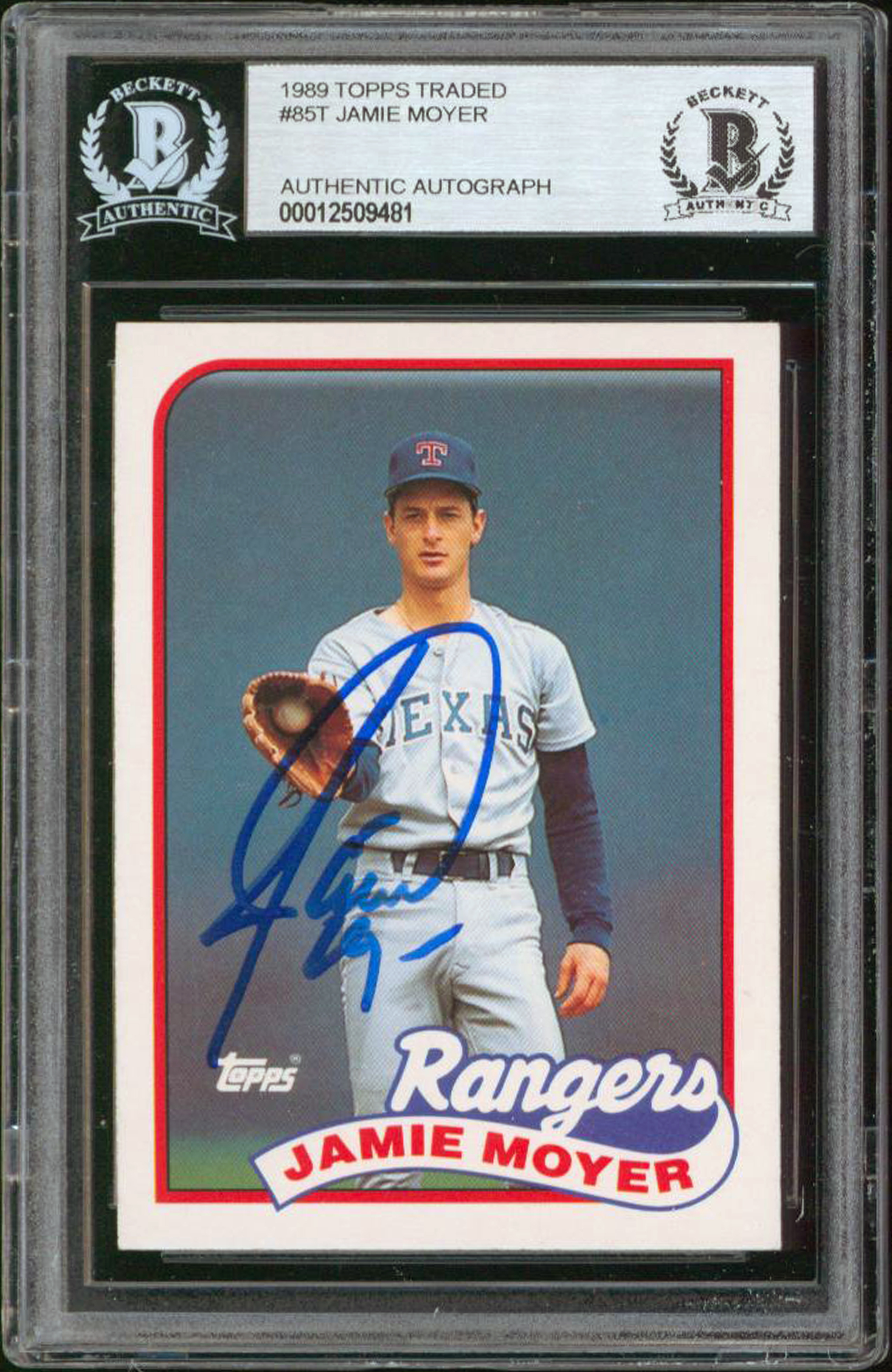 Rangers Jamie Moyer Authentic Signed 1989 Topps Traded #85T Card BAS Slabbed