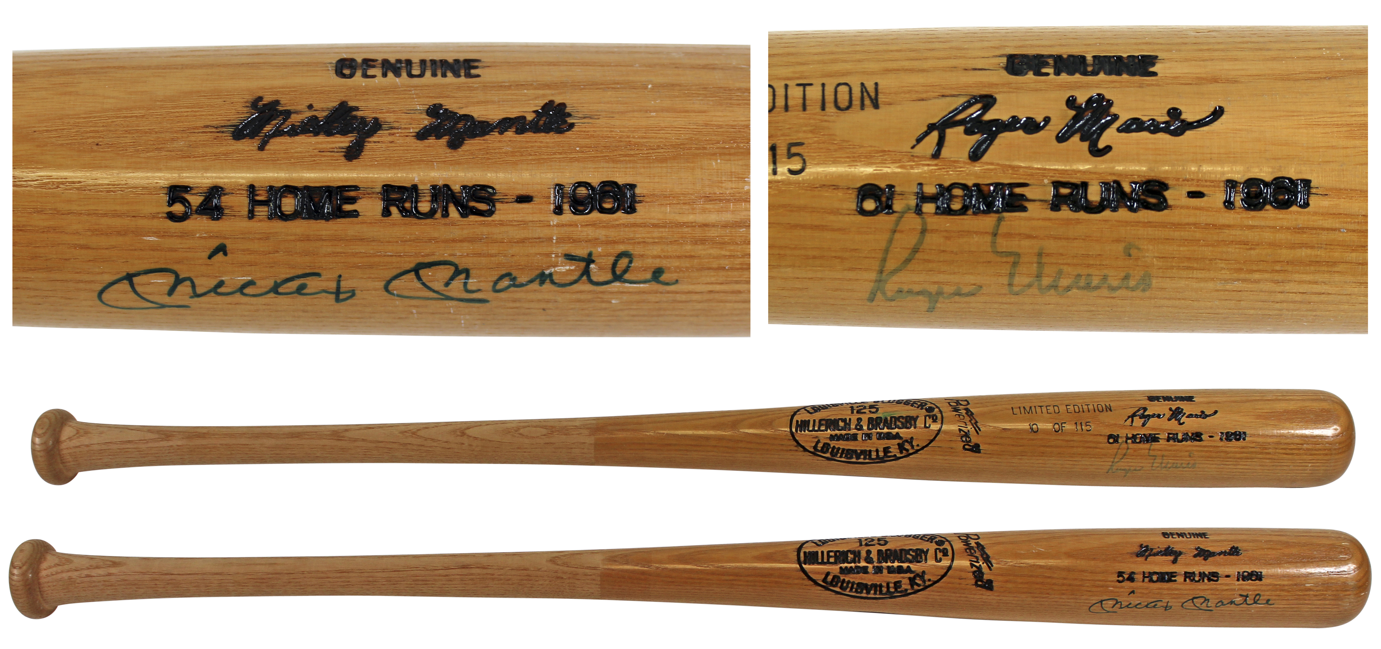 Yankees Mickey Mantle & Roger Maris Signed H&B LS 1961 Comm. Bat LE #10/115 PSA