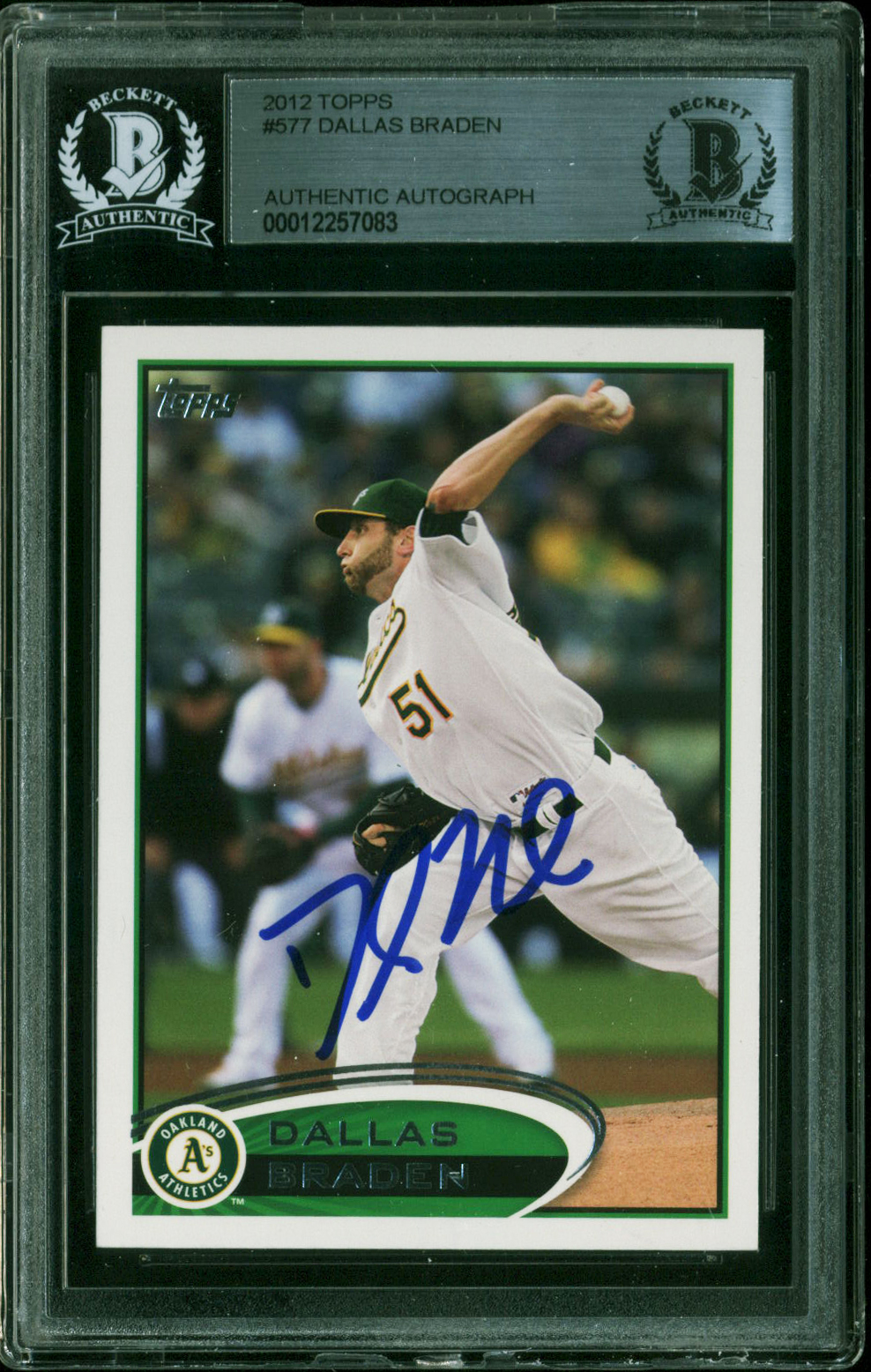 Athletics Dallas Braden Authentic Signed 2012 Topps #577 Card BAS Slabbed