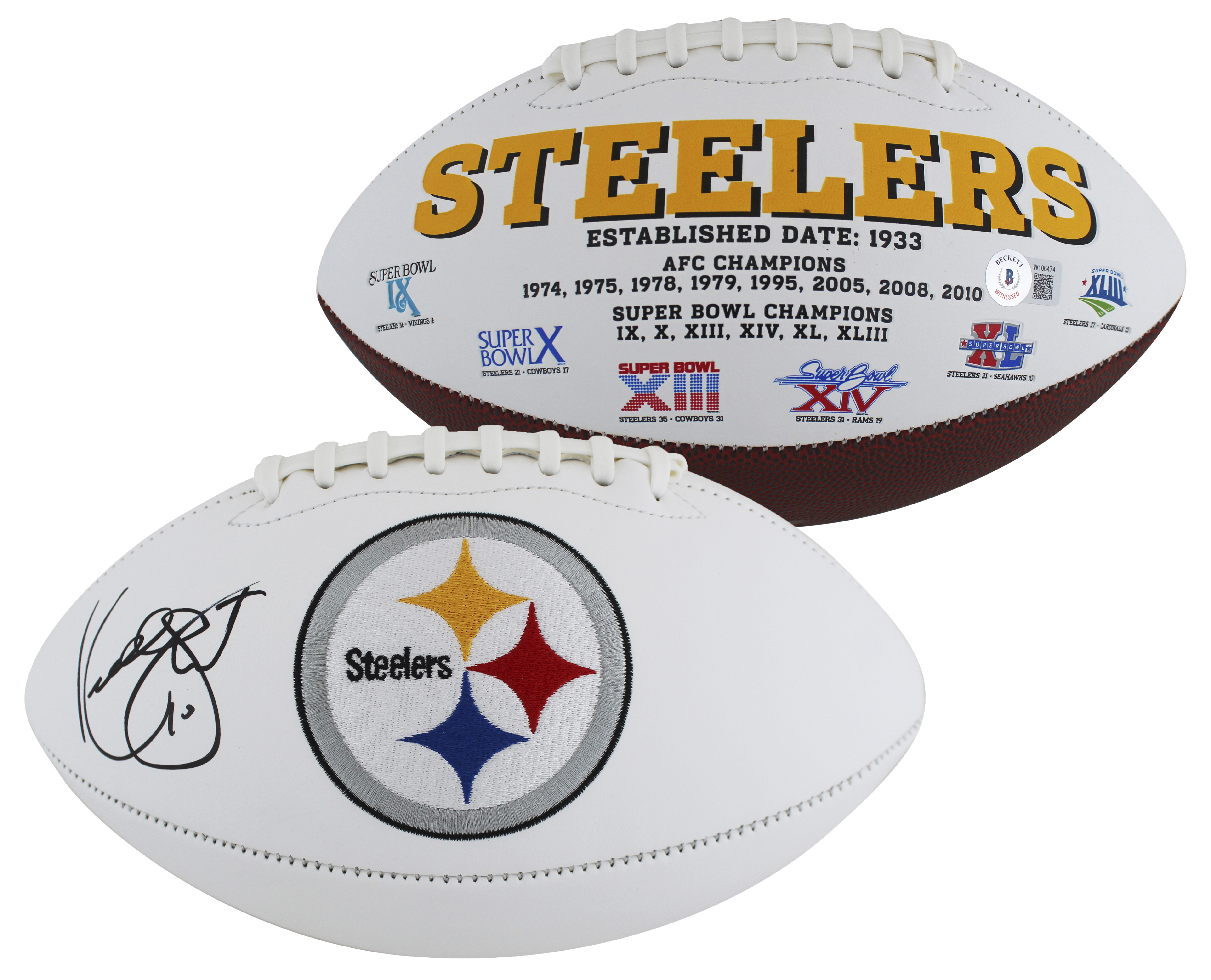 Steelers Kordell Stewart Authentic Signed White Panel Logo Football BAS Witness