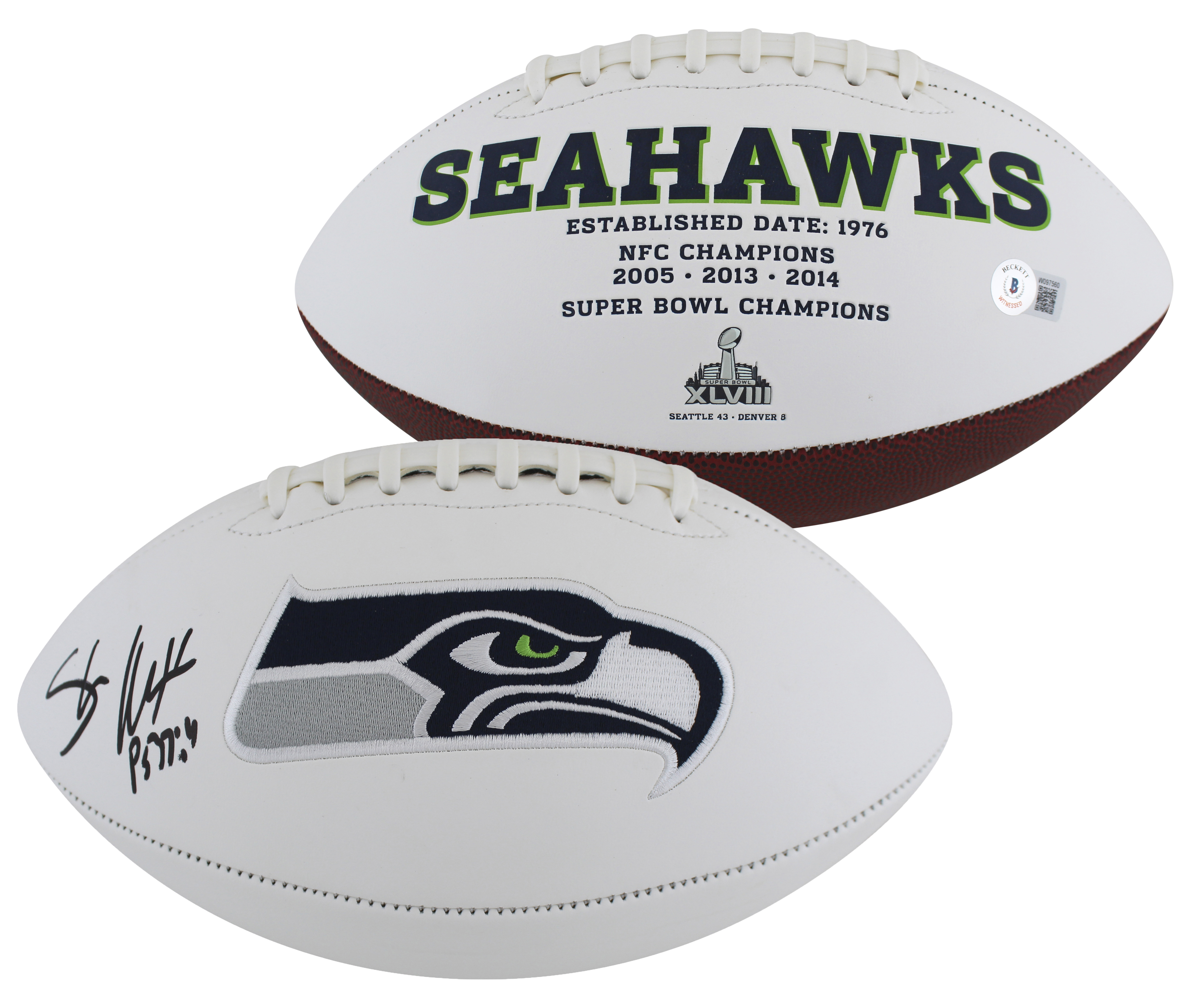 Seahawks Shaun Alexander Authentic Signed White Panel Logo Football BAS Witness