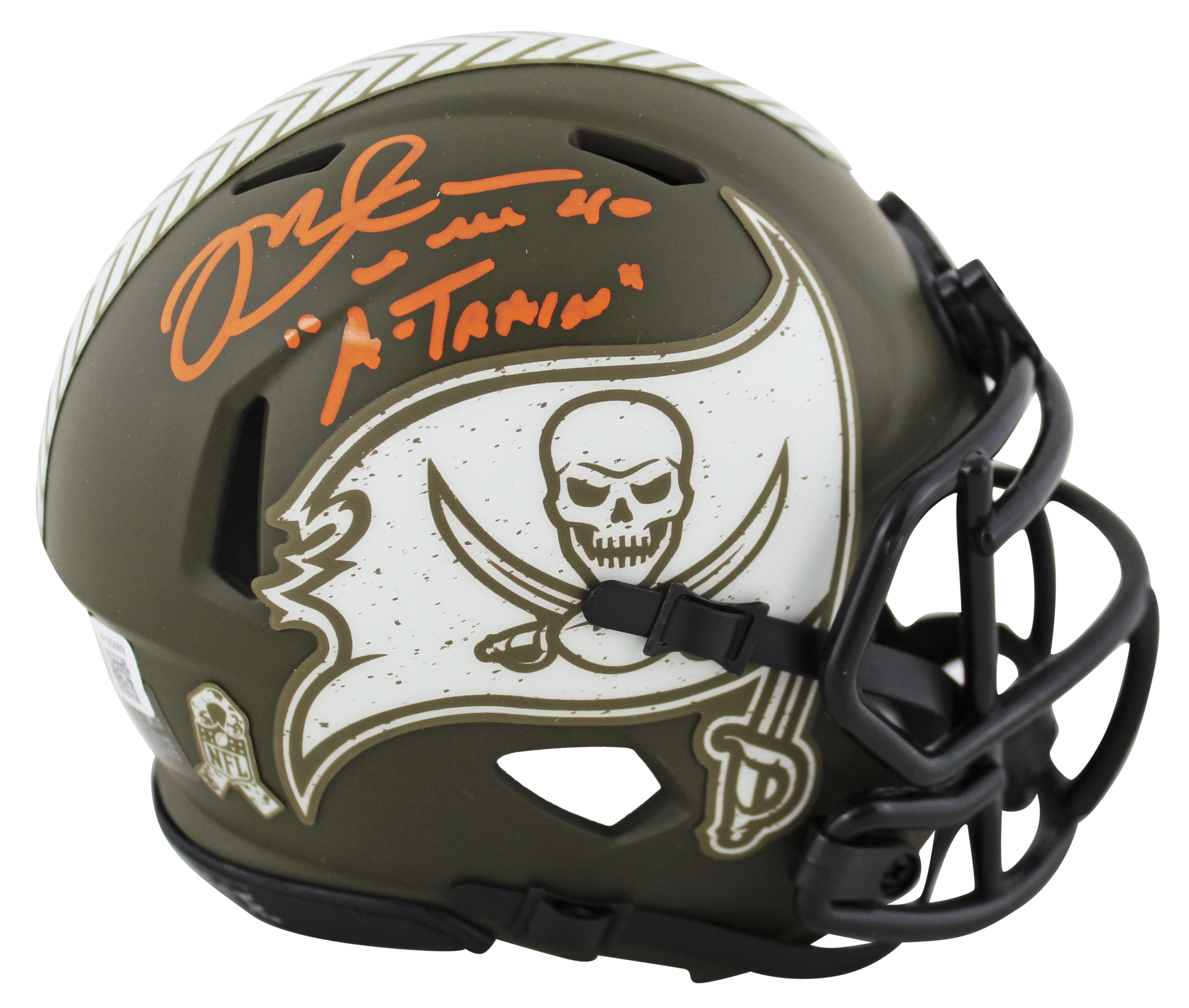 Buccaneers Mike Alstott A-Train Signed Salute To Service Speed Mini Helmet BAS W