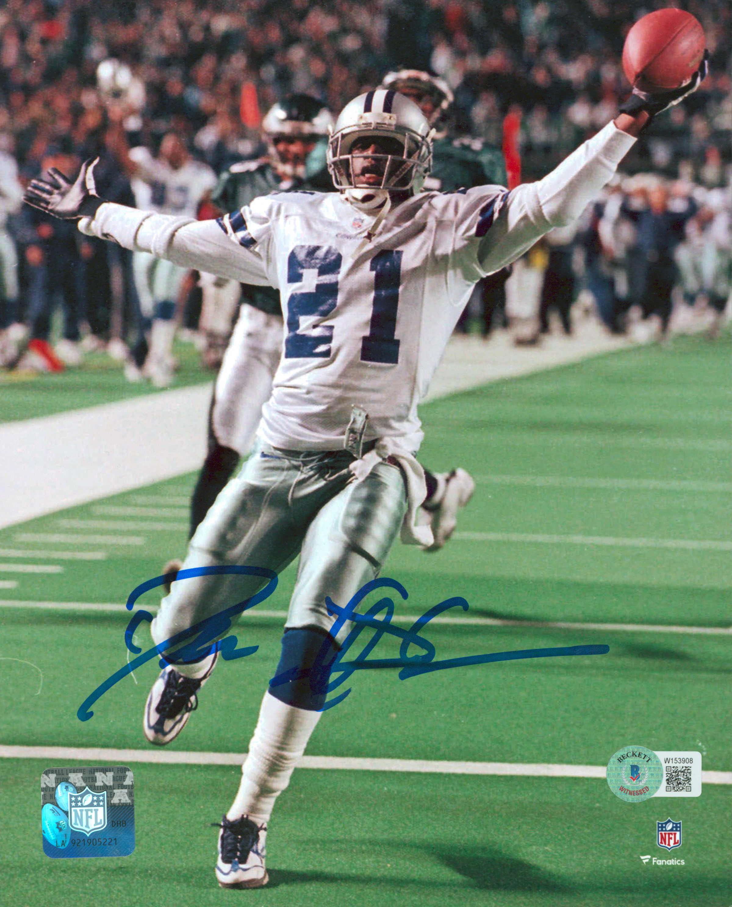 Cowboys Deion Sanders Authentic Signed 8x10 Vertical Photo Vs Eagles BAS Witness