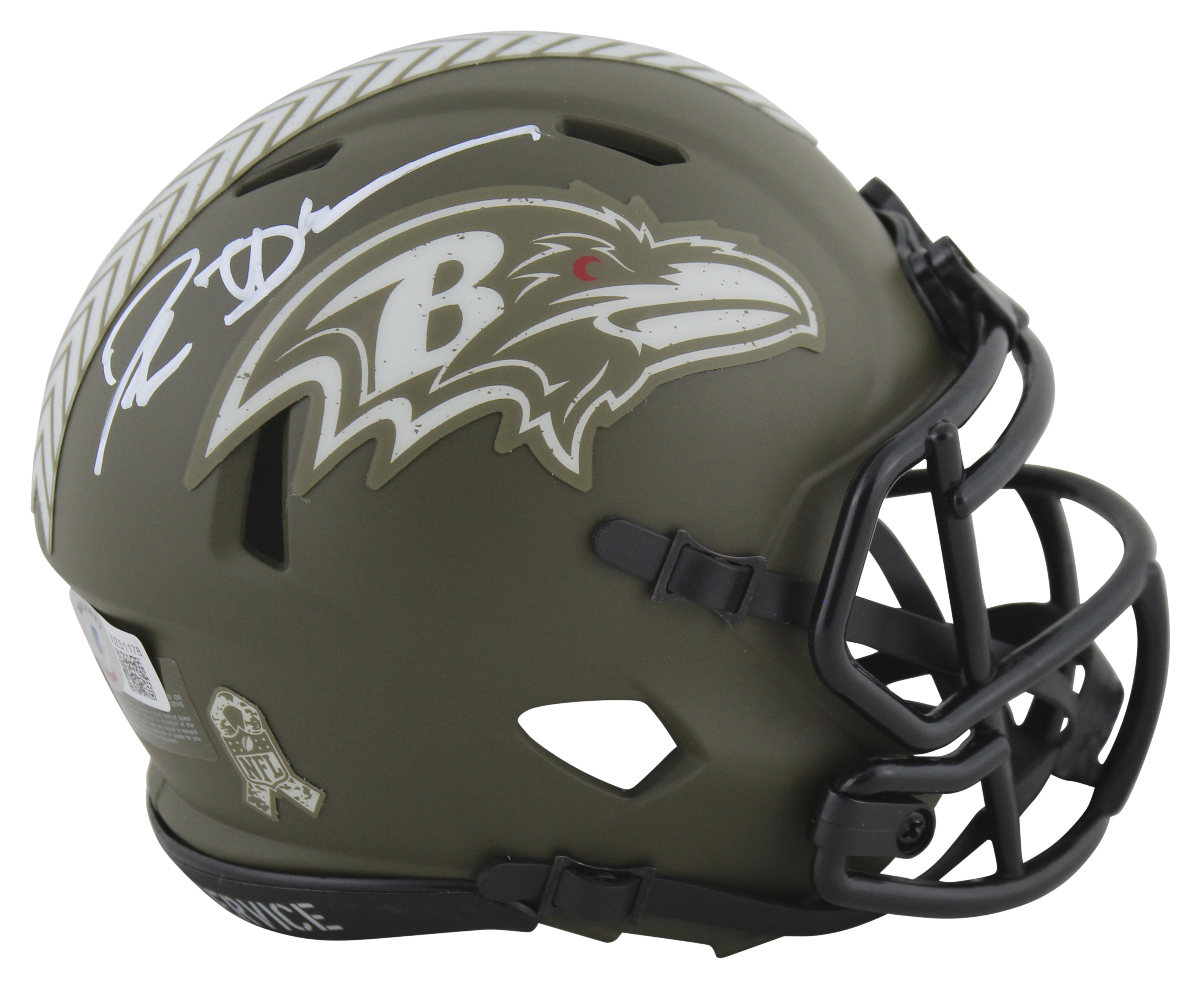 Ravens Deion Sanders Signed Salute To Service Speed Mini Helmet BAS Witnessed