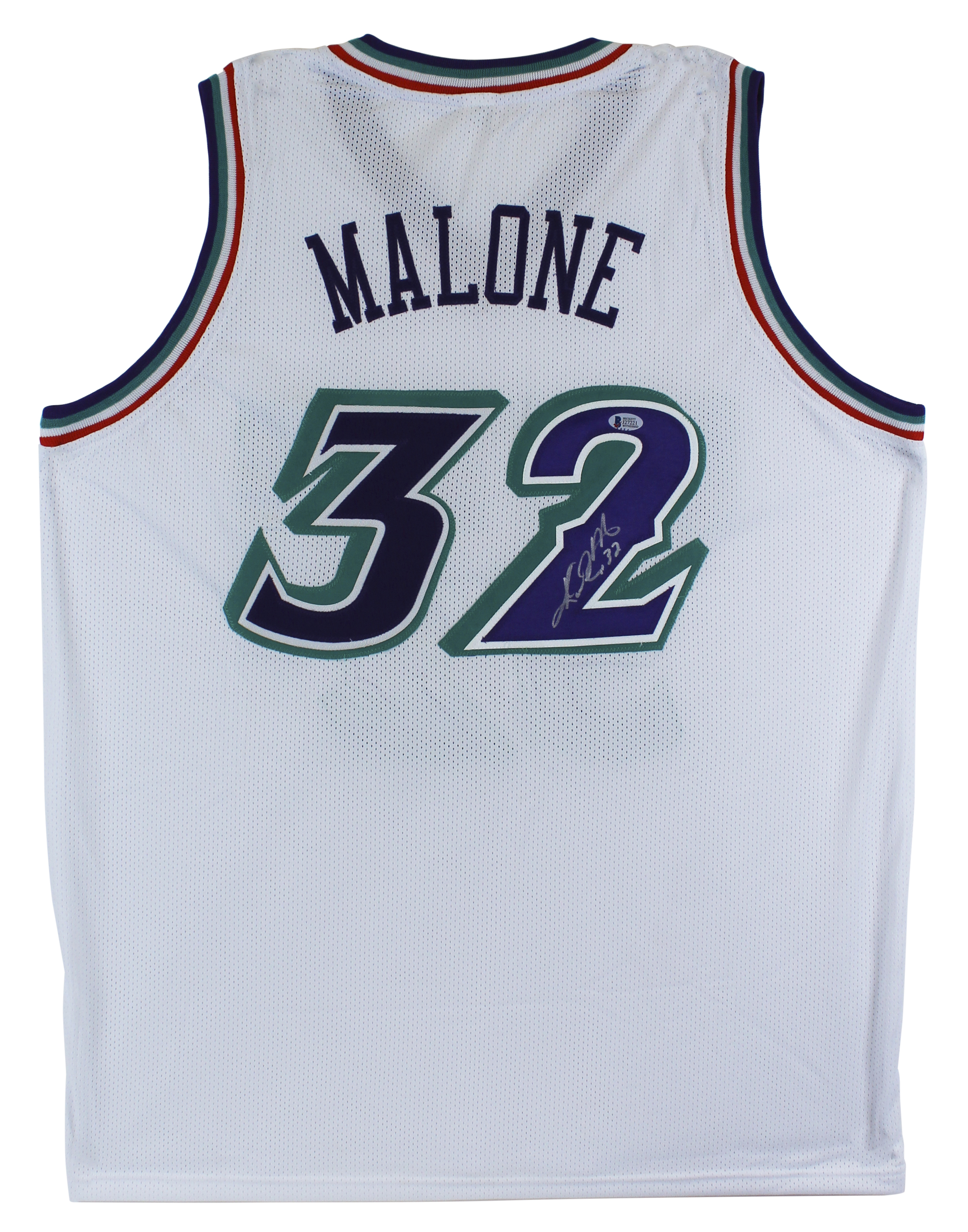 Karl Malone Authentic Signed White Pro Style Jersey Autographed BAS Witnessed