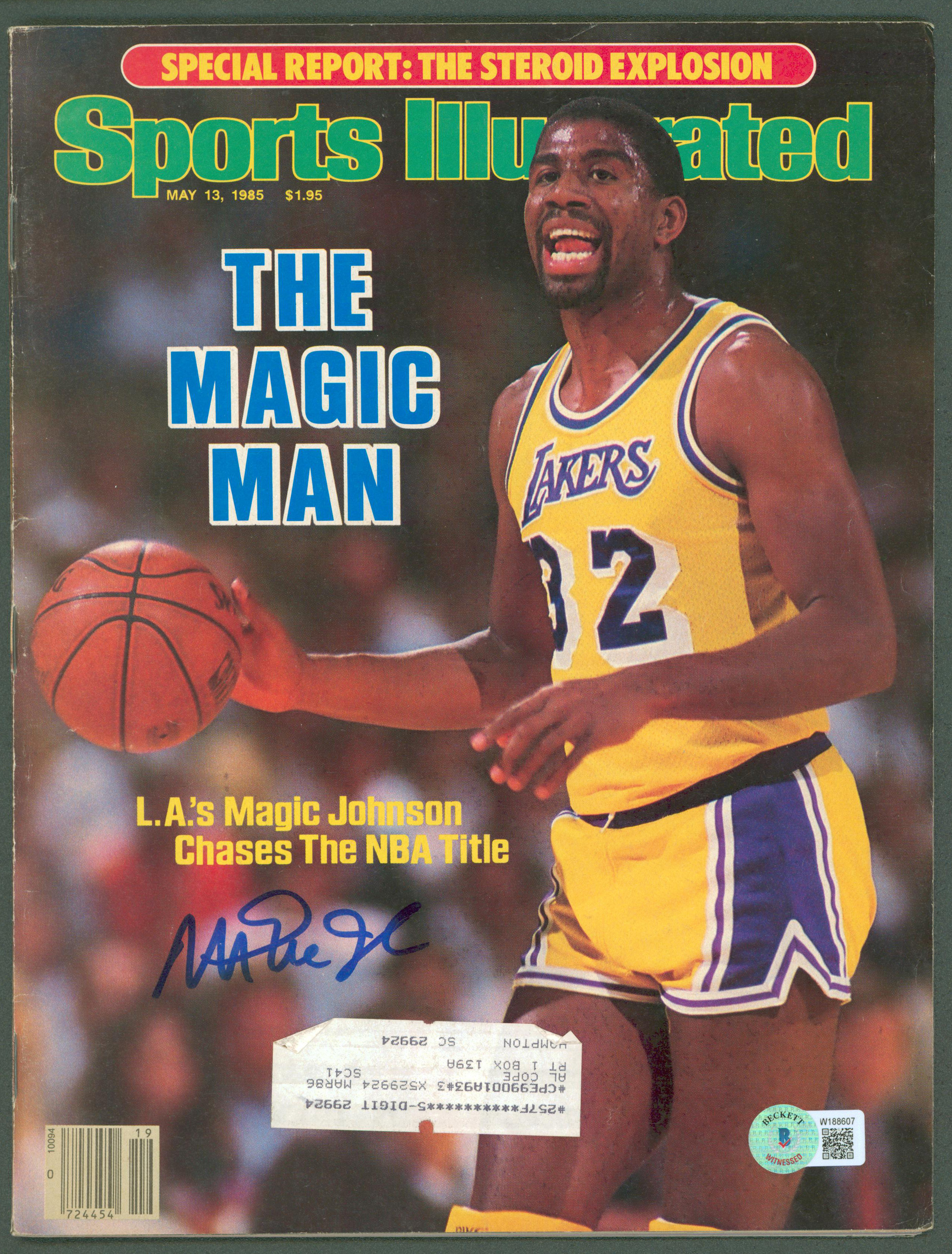 Lakers Magic Johnson Signed May 1985 Sports Illustrated Magazine BAS Witnessed