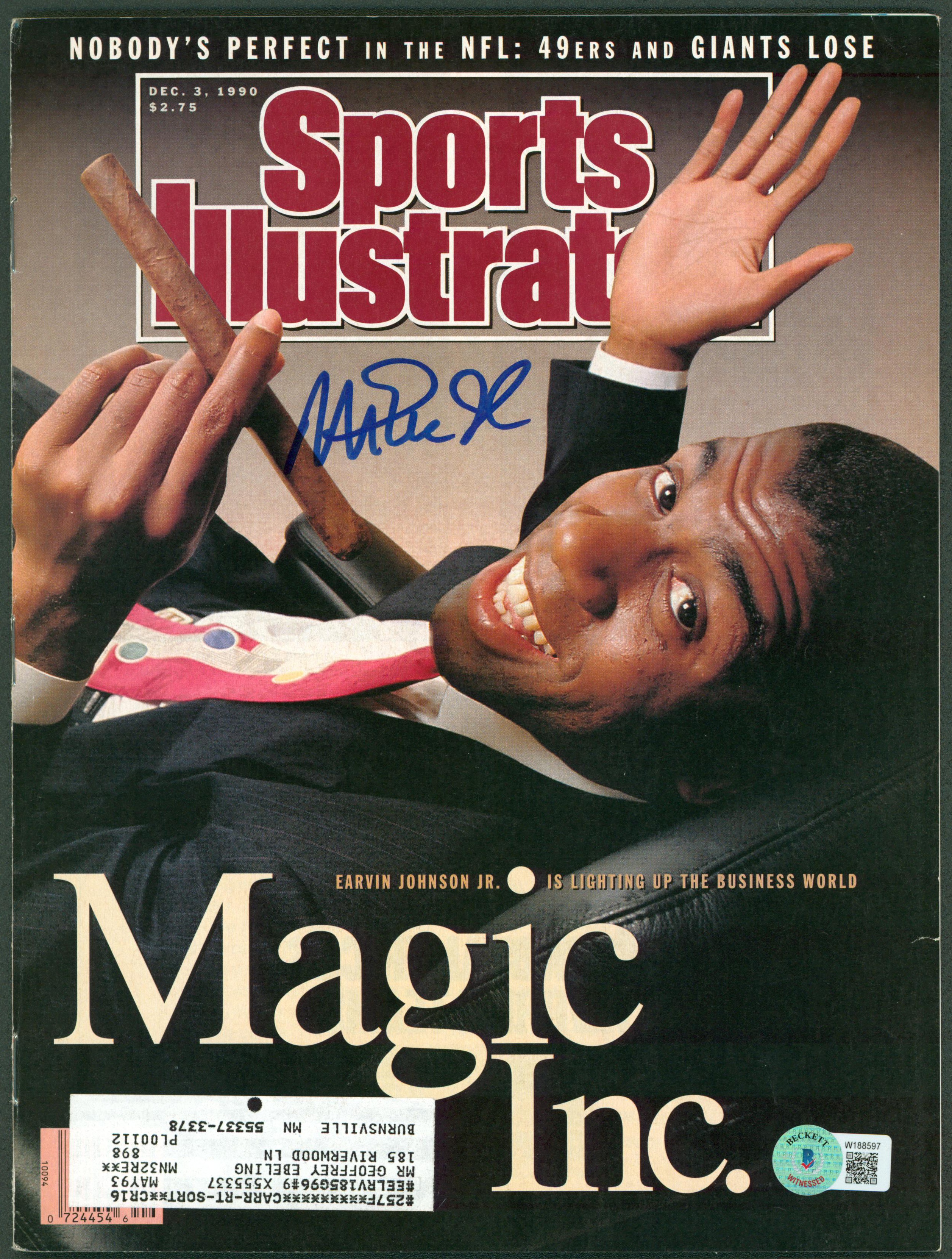 Lakers Magic Johnson Signed Dec. 1990 Sports Illustrated Magazine BAS Witnessed