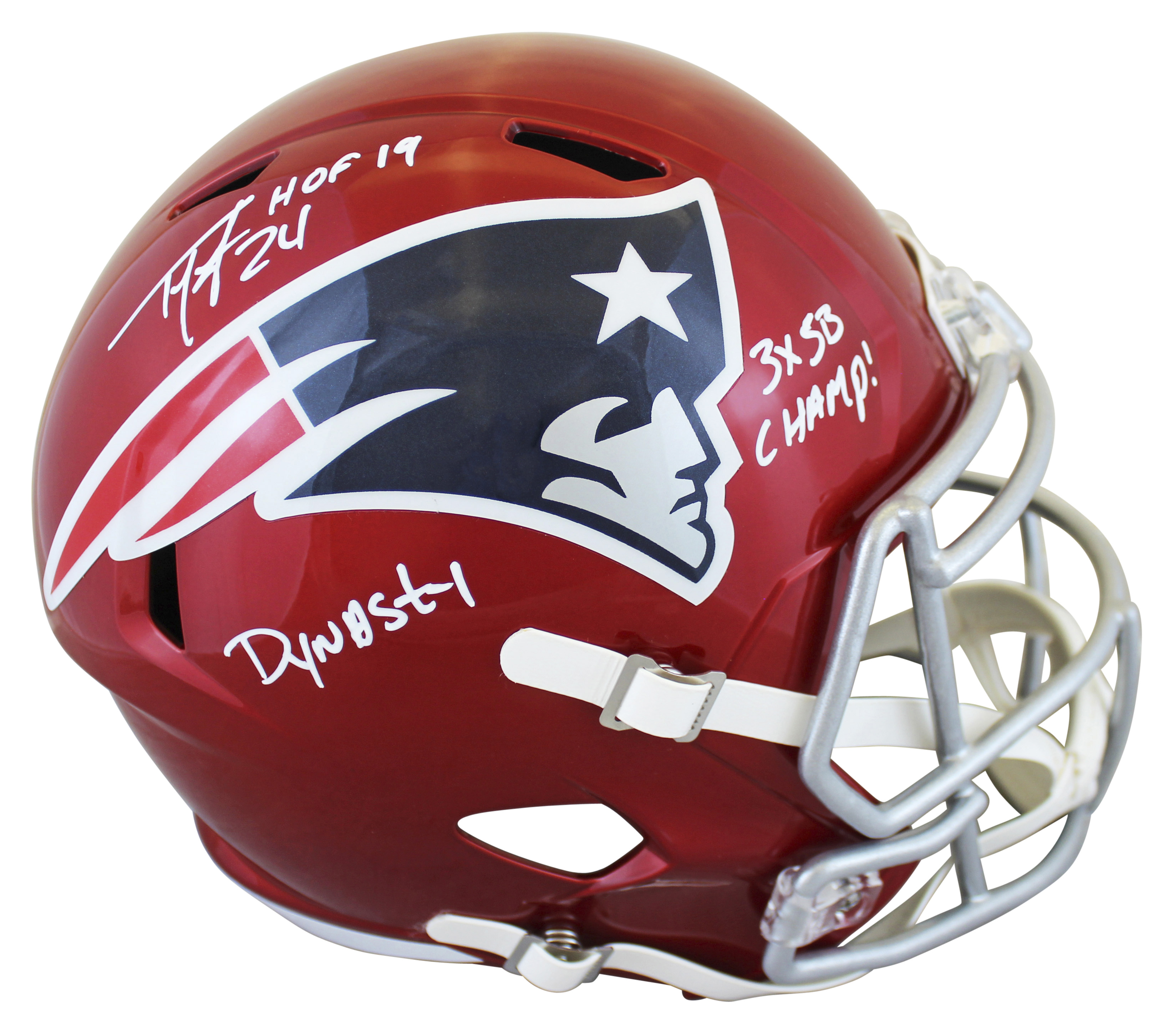 Patriots Ty Law "3x Insc" Signed Flash Full Size Speed Rep Helmet BAS Witnessed