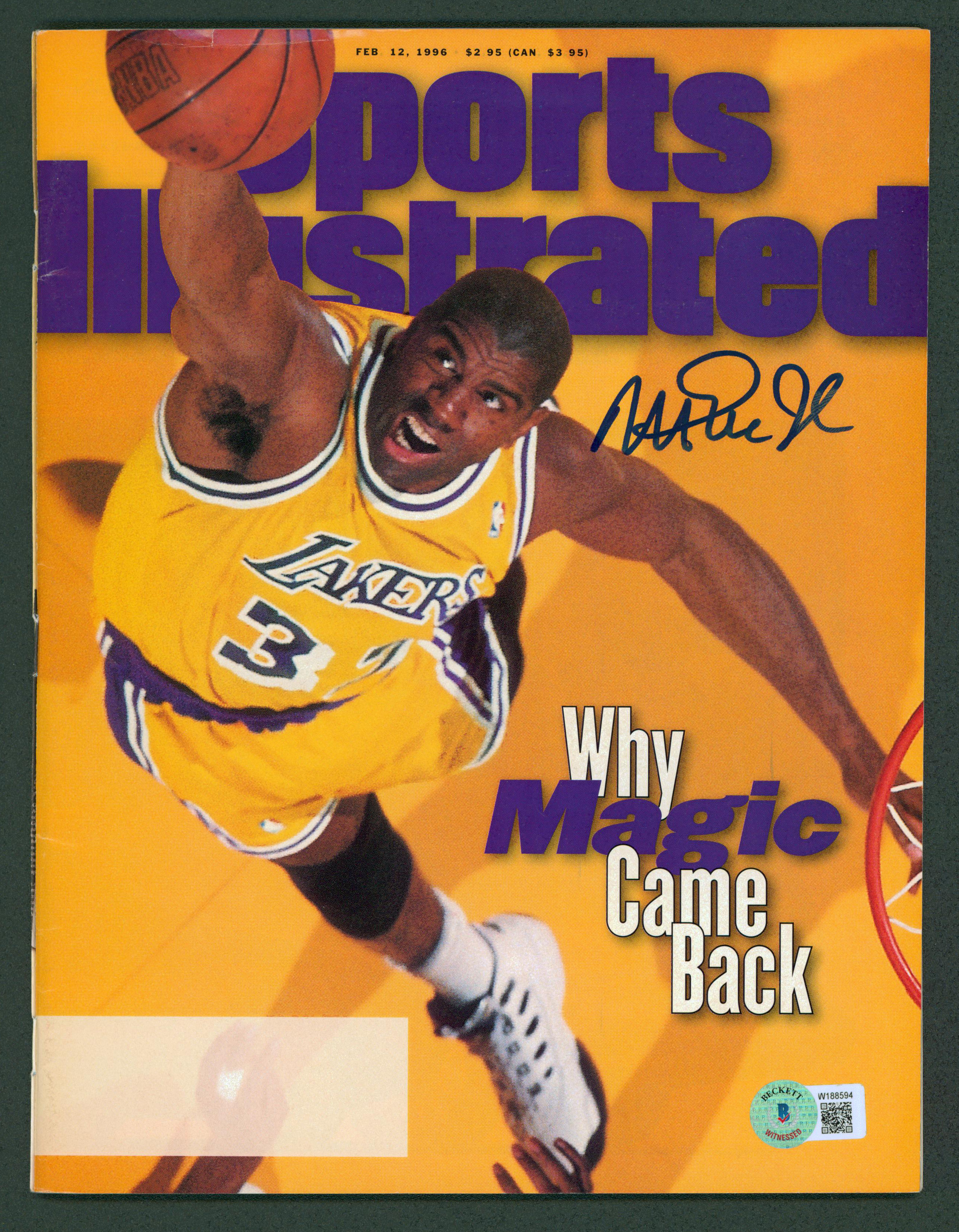Lakers Magic Johnson Signed Feb 1996 Sports Illustrated Magazine BAS Witnessed