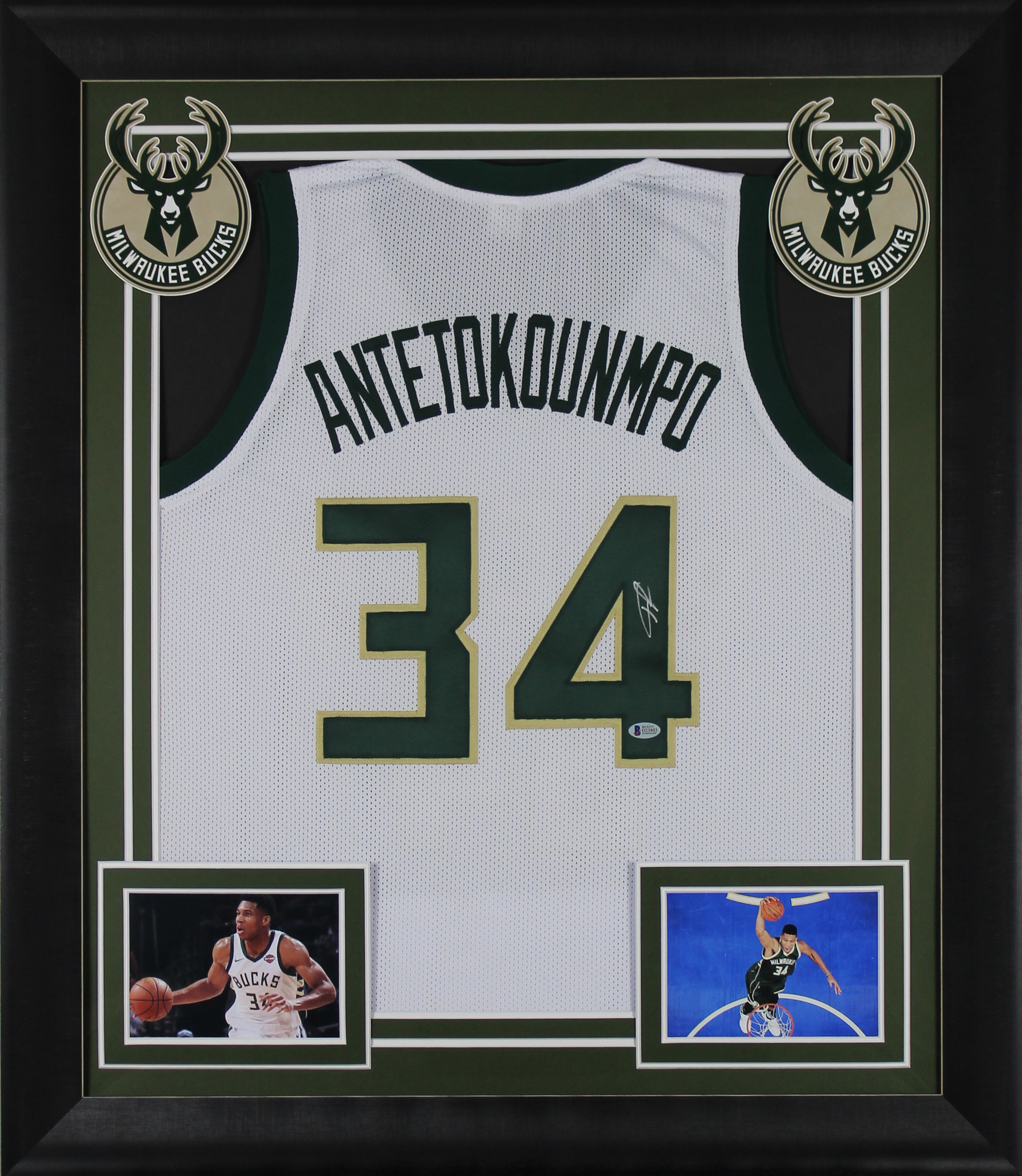 Giannis Antetokounmpo Signed White Pro Style Framed Jersey BAS Witnessed
