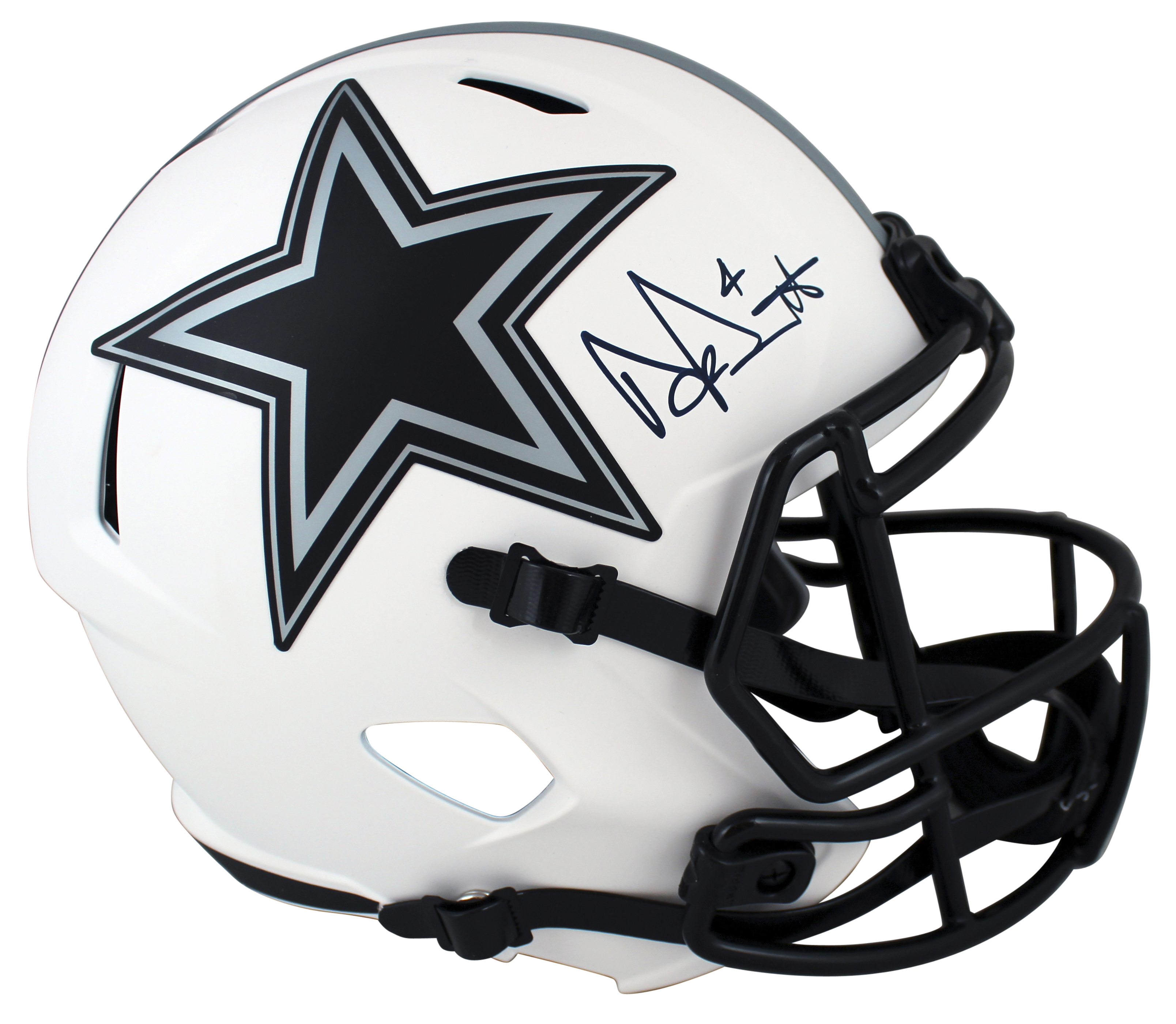 Cowboys Dak Prescott Signed Lunar Full Size Speed Rep Helmet BAS Witnessed