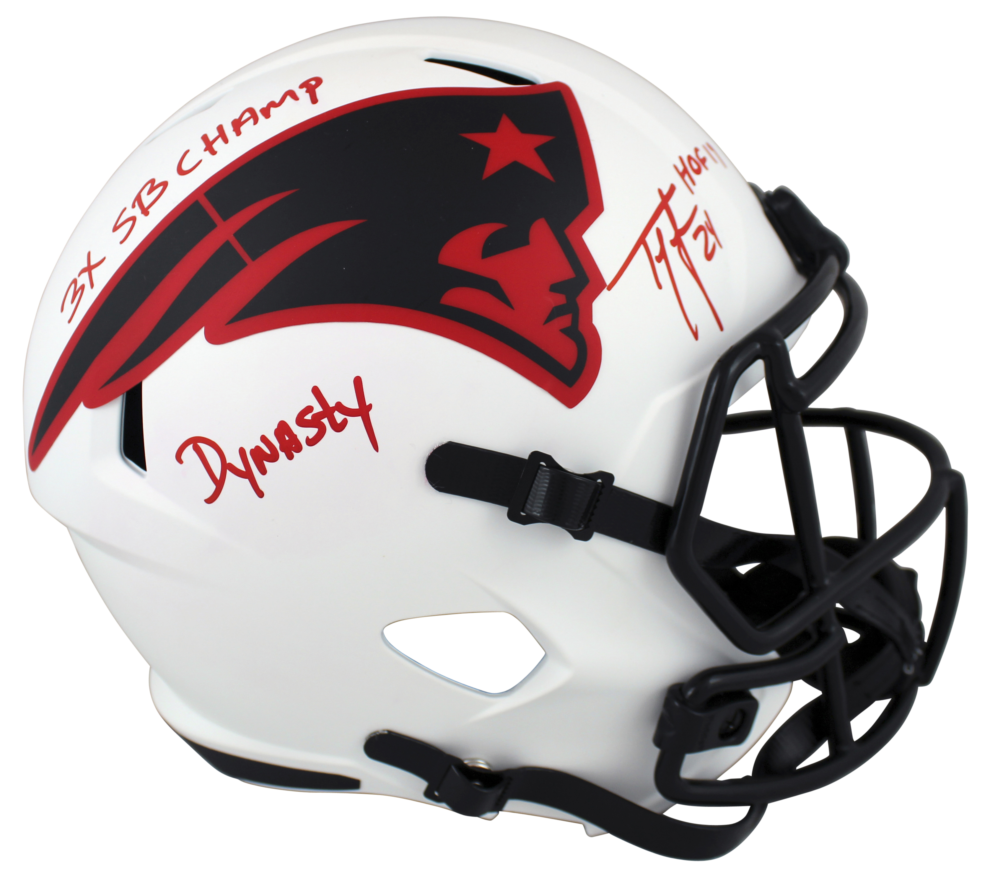 Patriots Ty Law "3x Insc" Signed Lunar Full Size Speed Rep Helmet BAS Witnessed