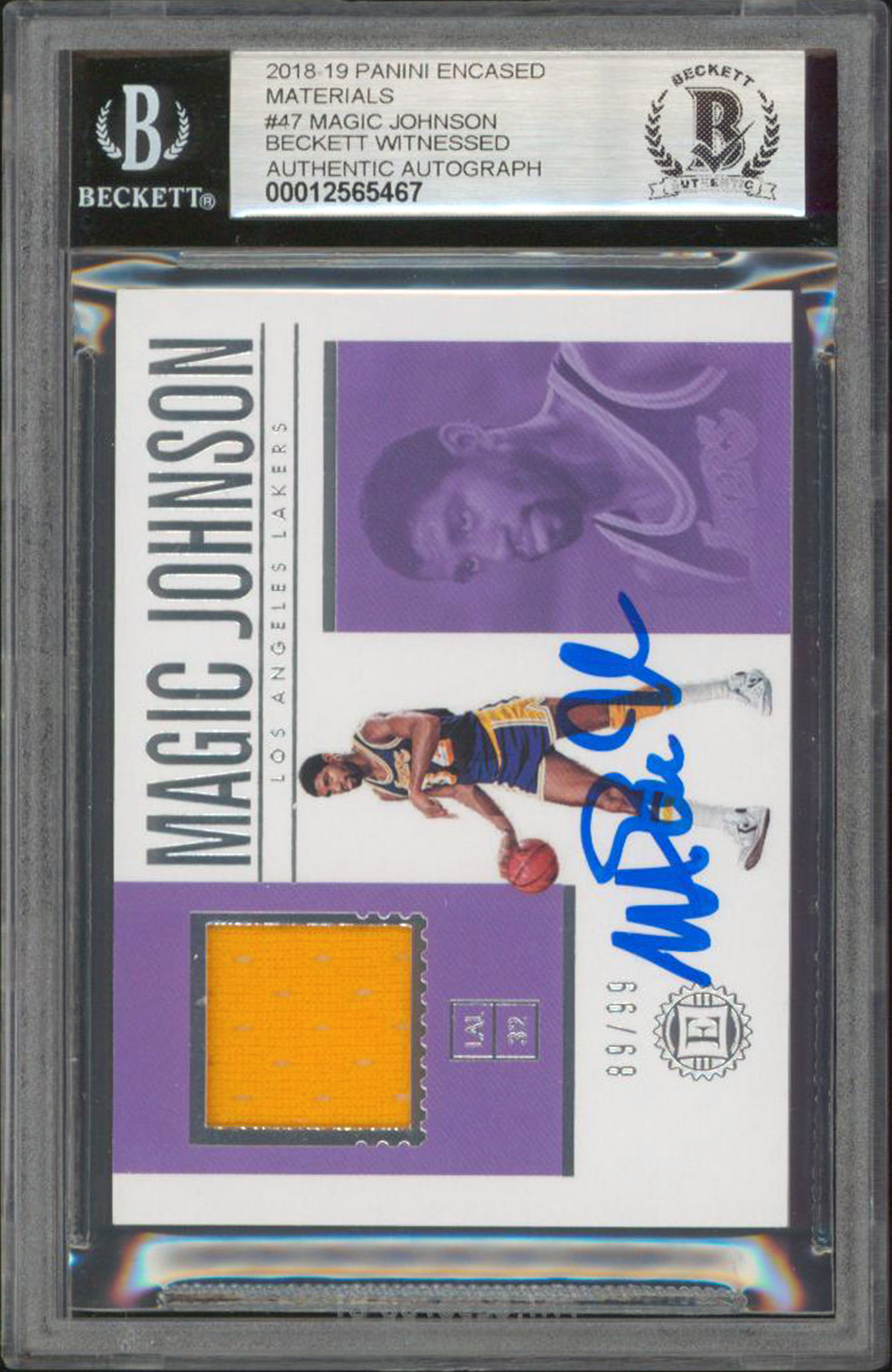 Magic Johnson Signed 2018 Panini Materials #47 89/99 Card Auto Grade 10 BAS Slab