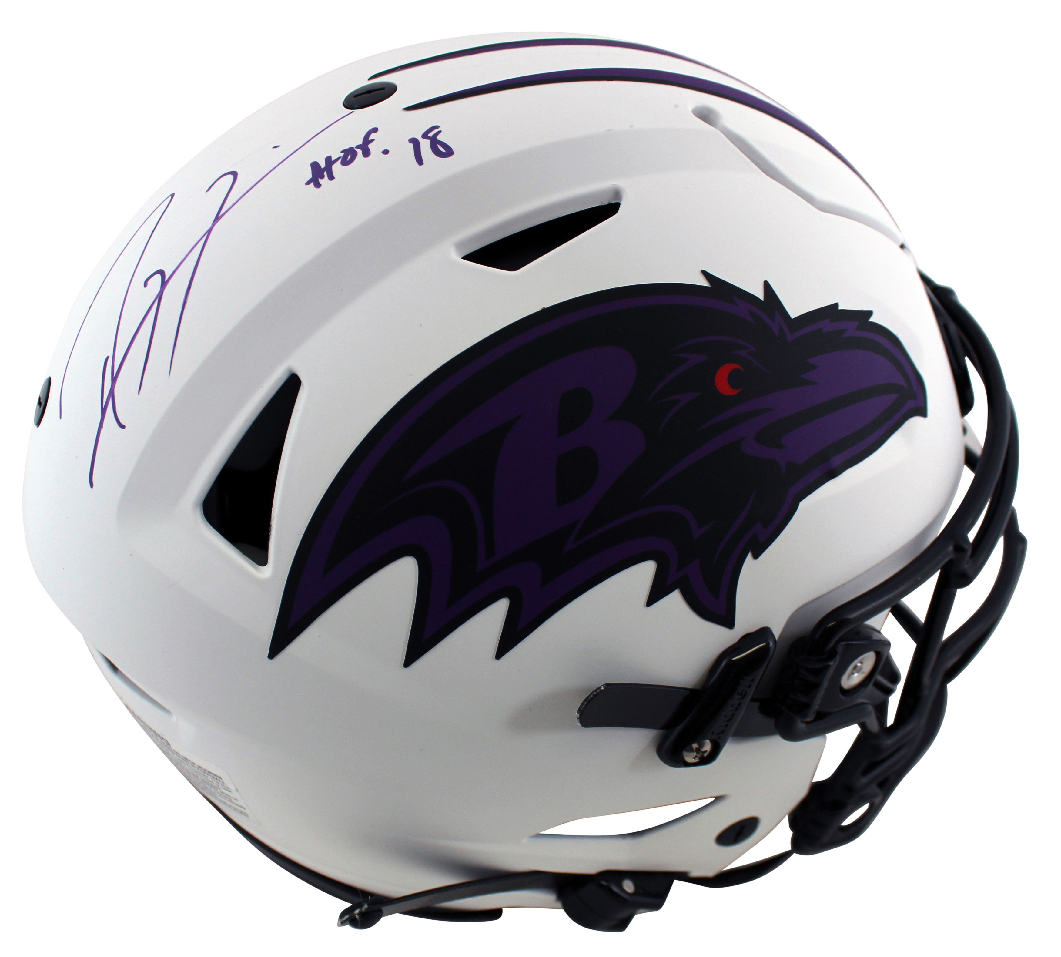 Ravens Ray Lewis "HOF 18" Signed Lunar Speed Flex Full Size Helmet BAS Witnessed