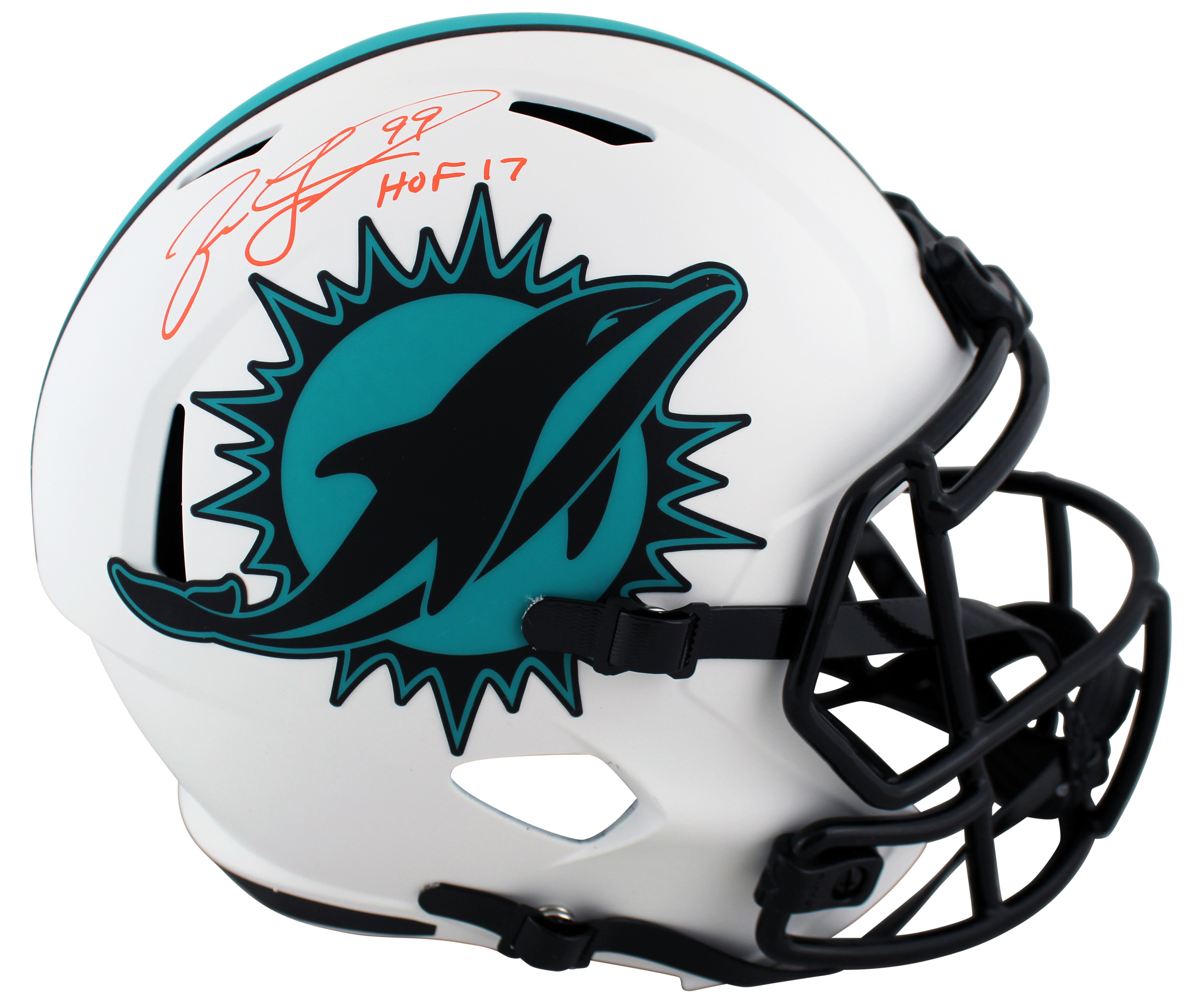 Dolphins Jason Taylor "HOF 17" Signed Lunar Full Size Speed Rep Helmet BAS Wit