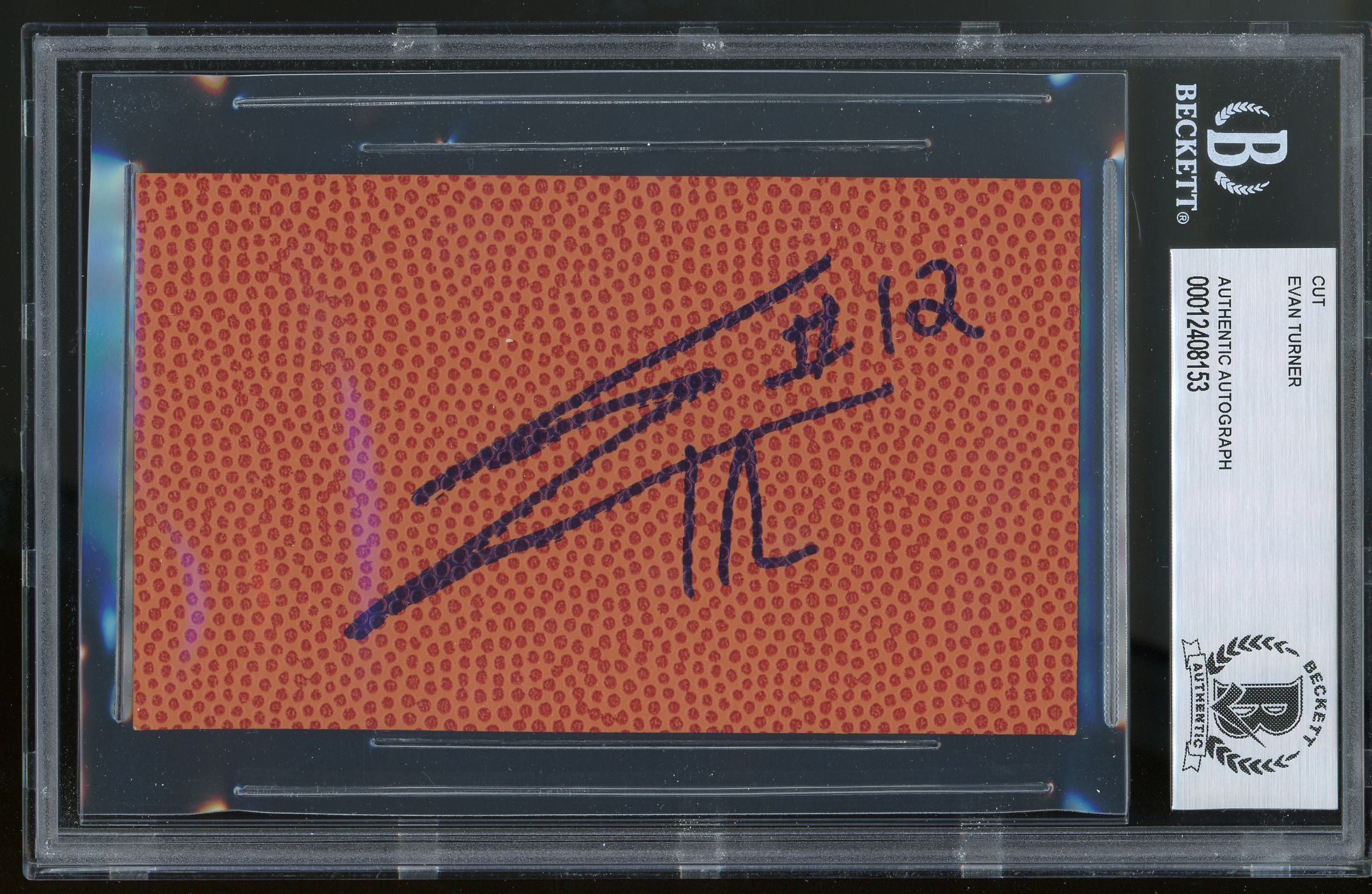 76ers Evan Turner Authentic Signed 3x5 Basketball Cut Signature BAS Slabbed