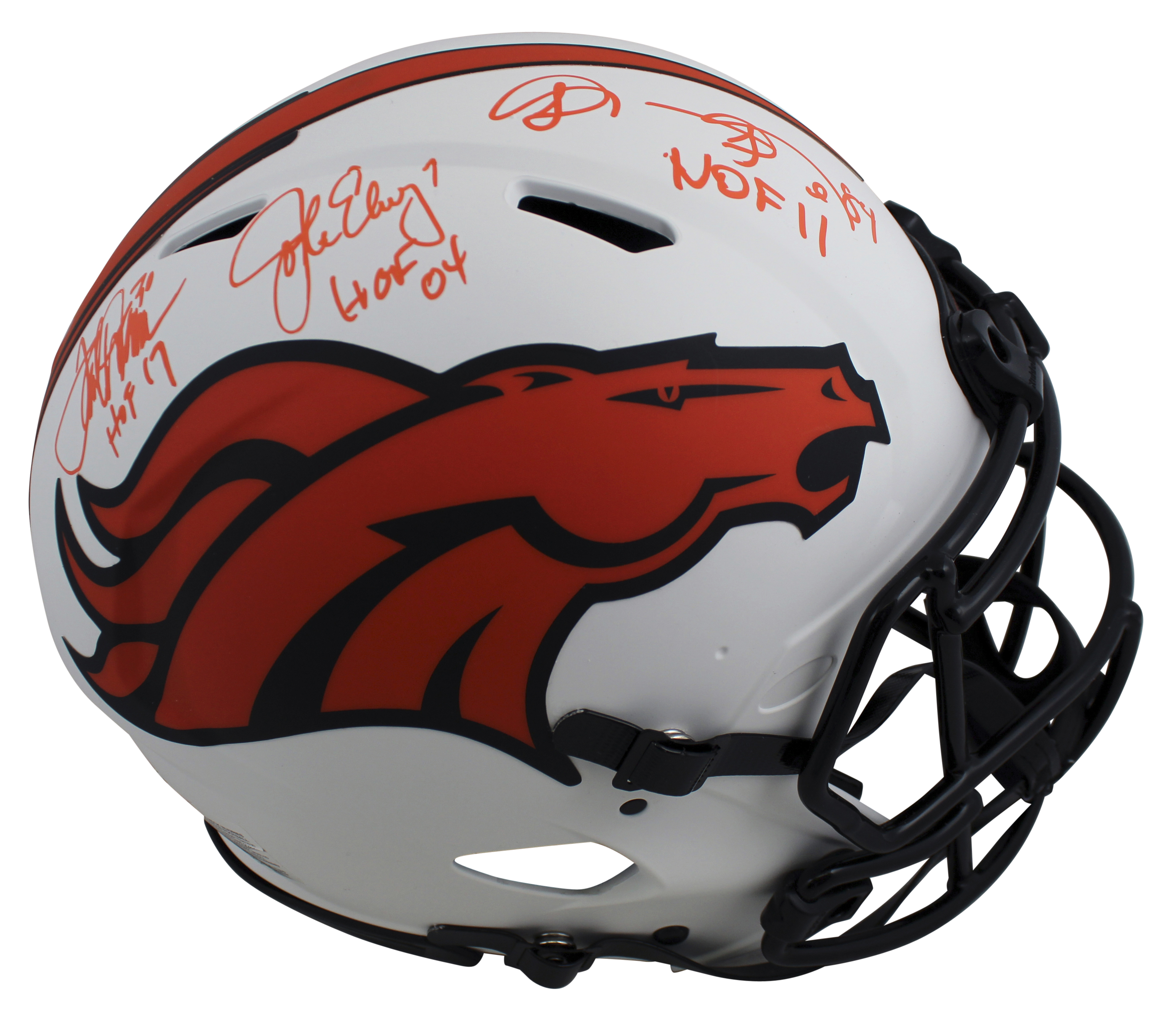 Broncos (3) Elway, Sharpe, & Davis Signed Lunar F/S Speed Proline Helmet BAS Wit