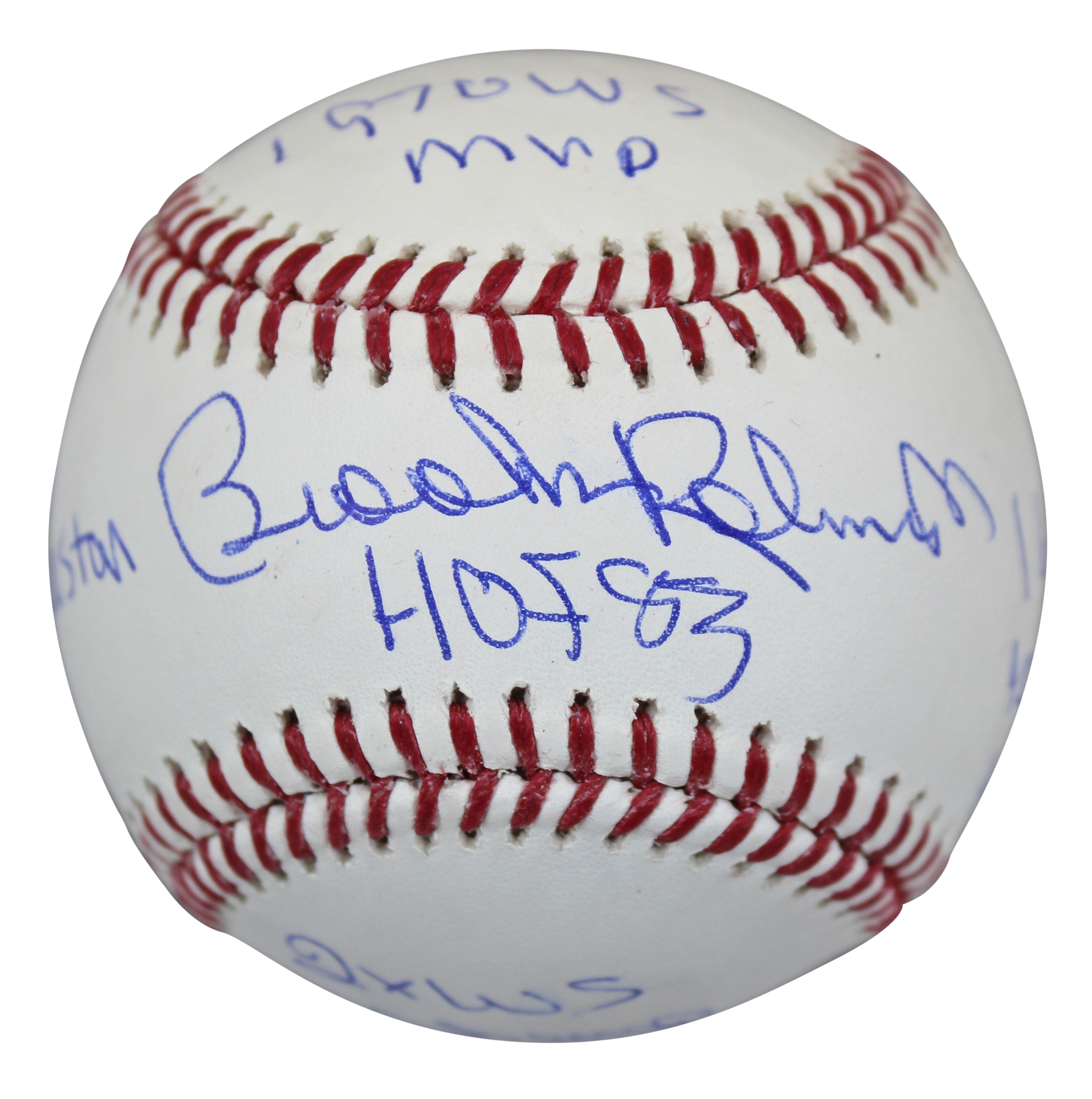Orioles Brooks Robinson "Career Stat" Authentic Signed Oml Baseball BAS Witness