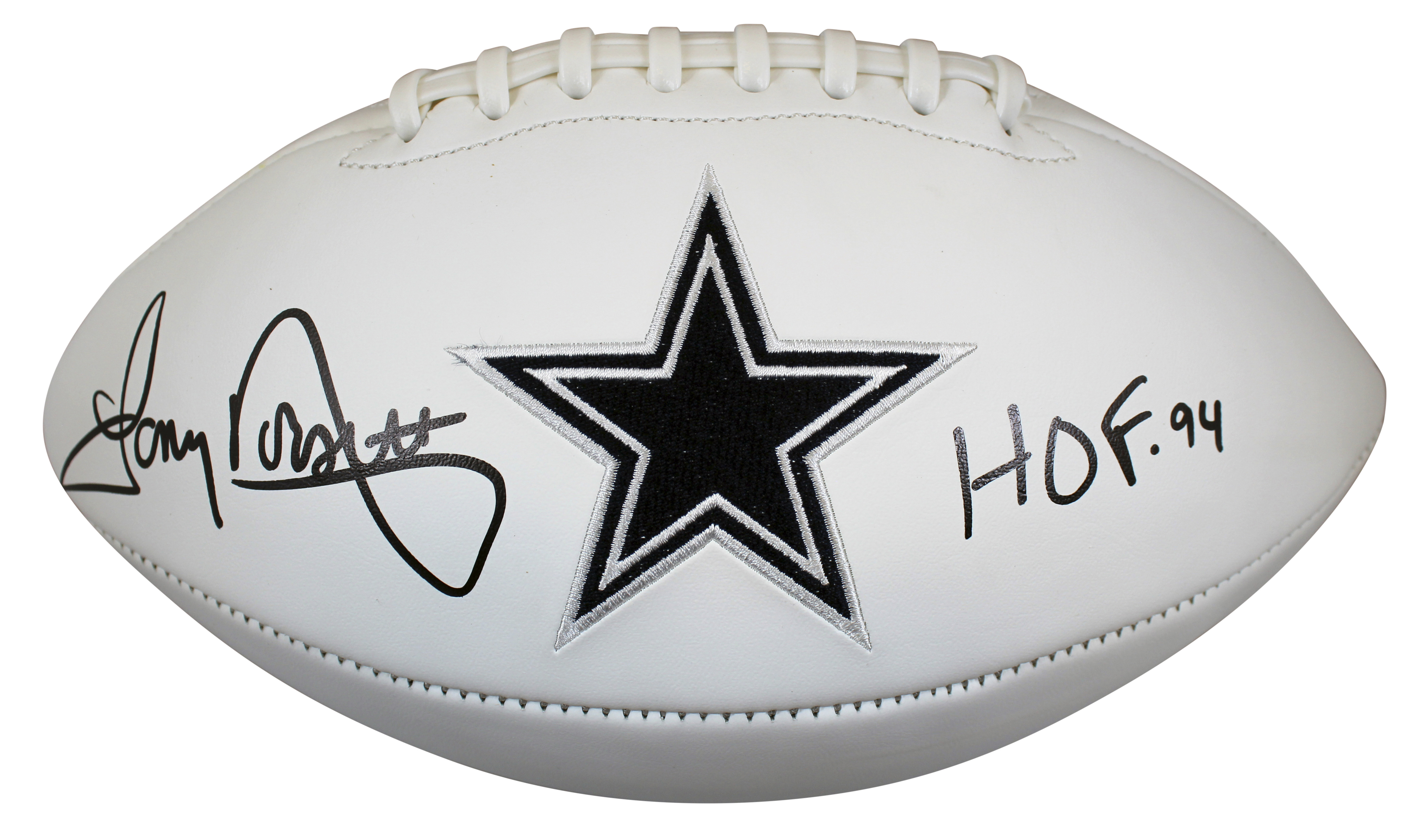 Cowboys Tony Dorsett "HOF 94" Signed White Panel Logo Football BAS Witnessed