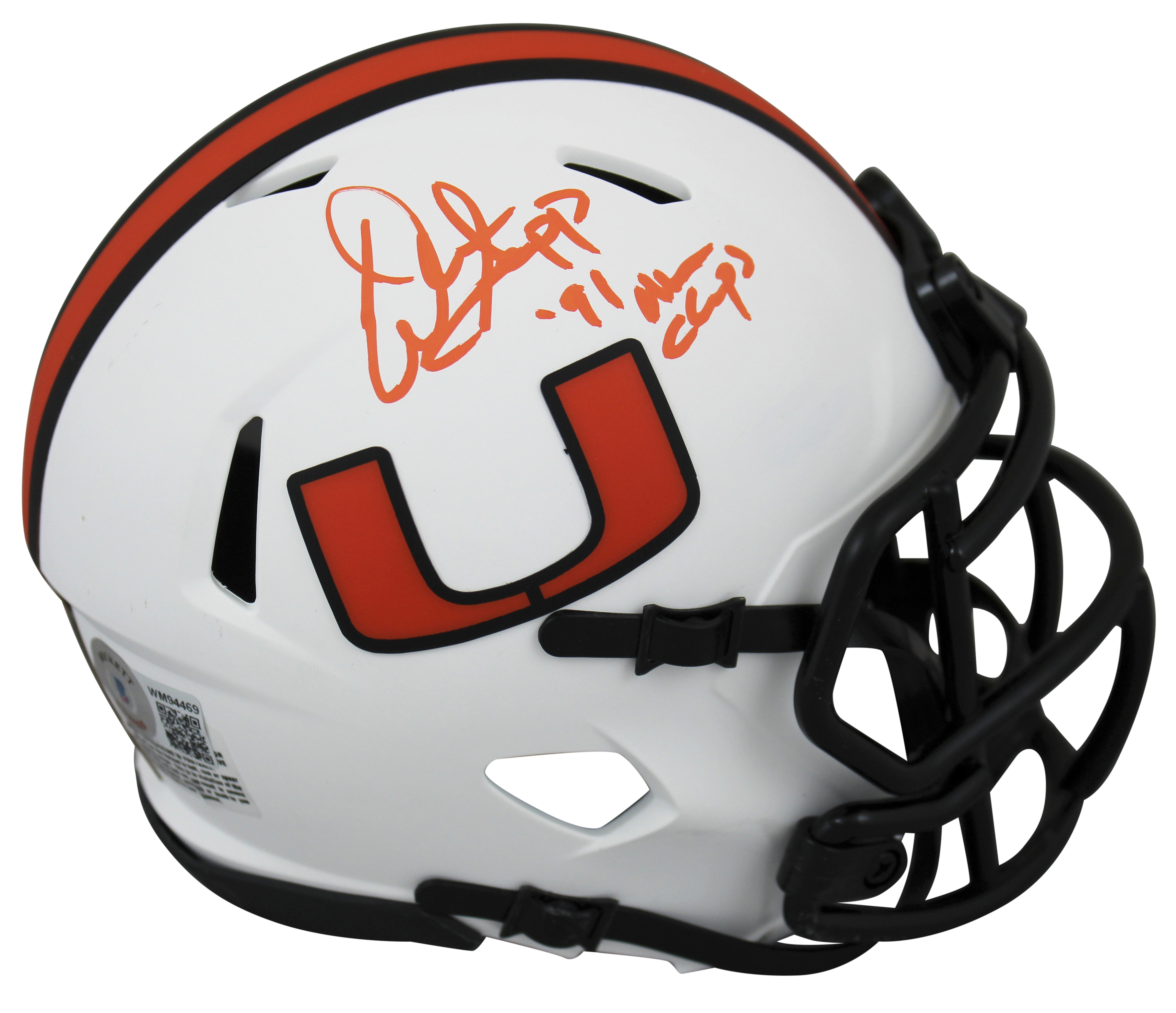 Warren Sapp "91 Champs" Signed Lunar Speed Mini Helmet w/ Orange Sig BAS Witness