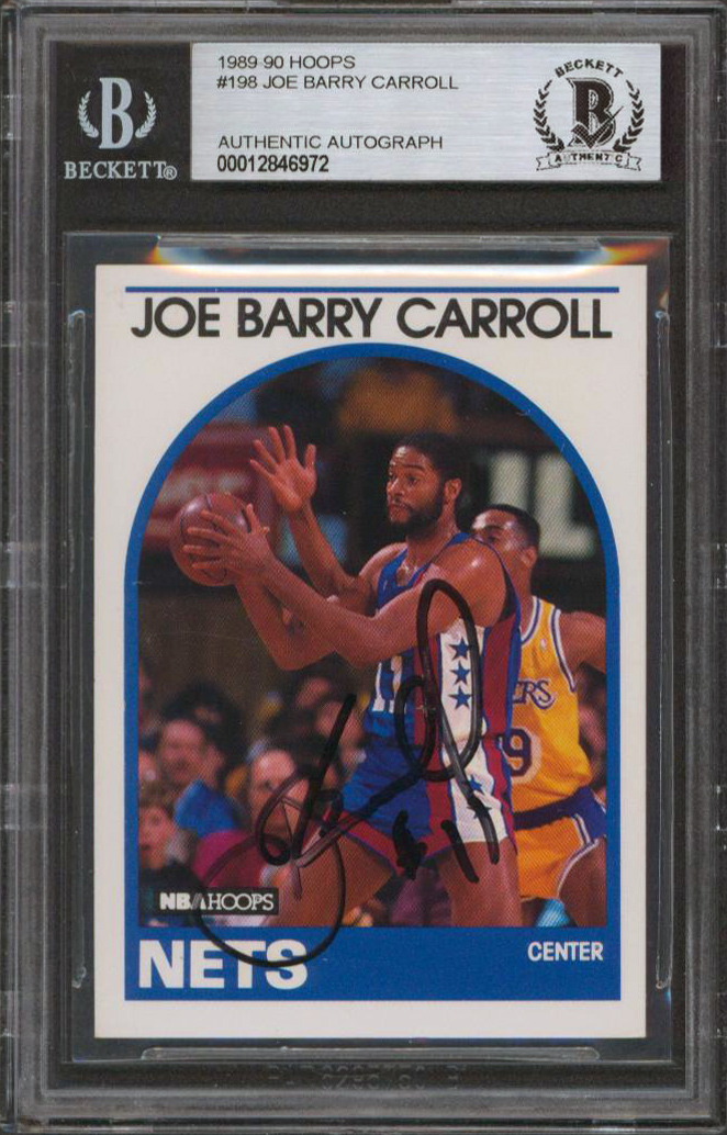 Nets Joe Barry Carroll Authentic Signed 1989 Hoops #198 Card BAS Slabbed