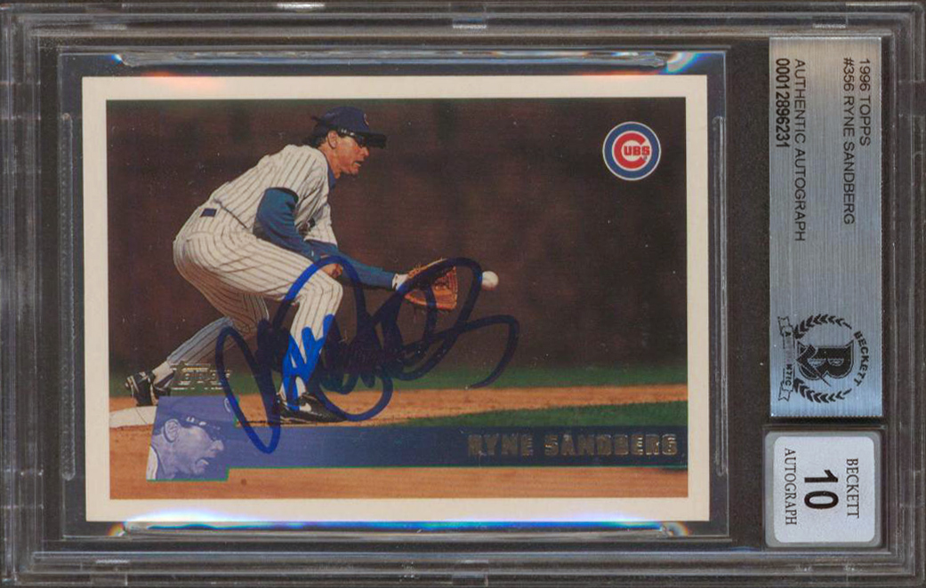 Cubs Ryne Sandberg Authentic Signed 1996 Topps #356 Card Auto 10! BAS Slabbed