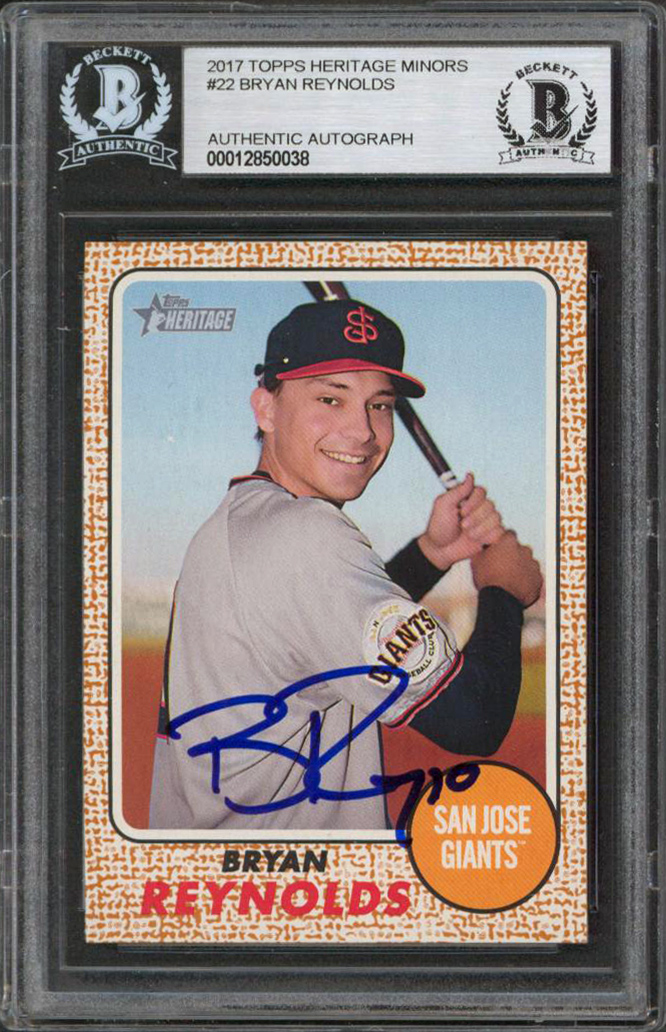 Giants Bryan Reynolds Signed 2017 Topps Heritage Minors #22 RC Card BAS Slabbed