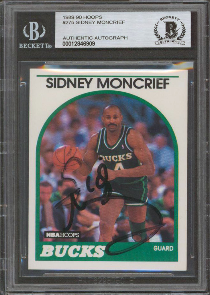 Bucks Sidney Moncrief Authentic Signed 1989 Hoops #275 Card BAS Slabbed
