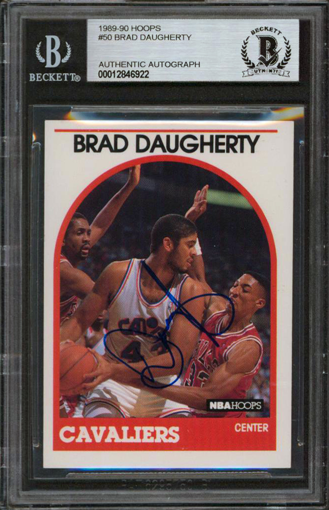 Cavaliers Brad Daugherty Authentic Signed 1989 Hoops #50 Card BAS Slabbed