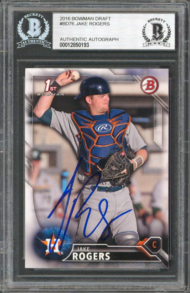 Astros Jake Rogers Signed 2016 Bowman Draft #BD76 Rookie Card BAS Slabbed