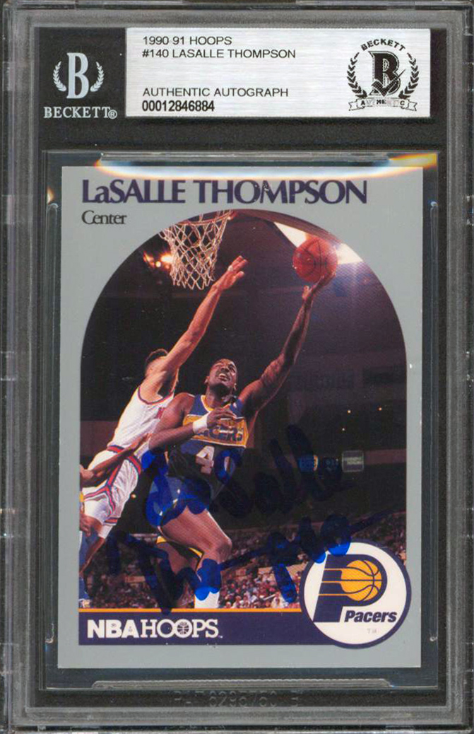 Pacers LaSalle Thompson Authentic Signed 1990 Hoops #140 Card BAS Slabbed