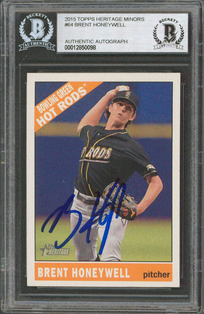 Rays Brent Honeywell Signed 2015 Topps Heritage Minors #64 RC Card BAS Slabbed