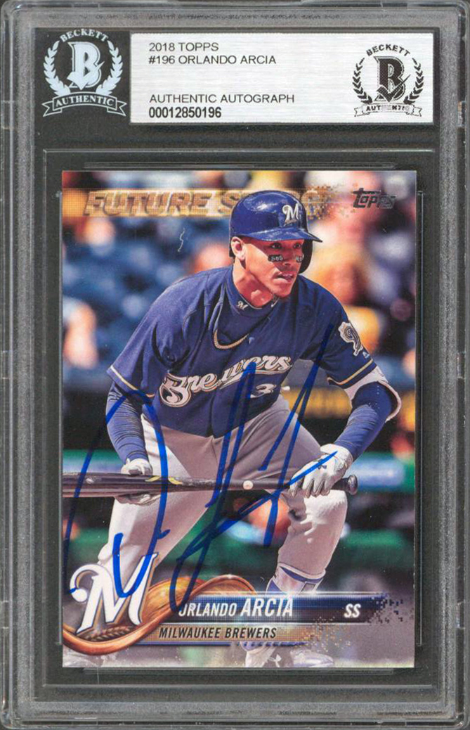 Brewers Orlando Arcia Authentic Signed 2018 Topps #196 Rookie Card BAS Slabbed
