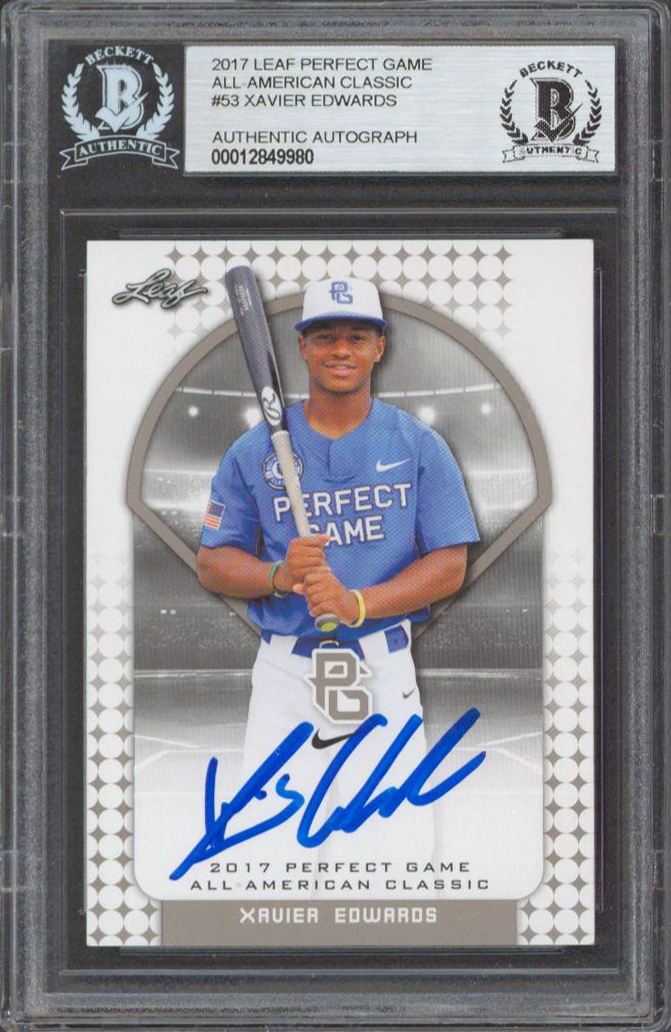 Padres Xavier Edwards Signed 2017 Leaf Perfect Game #53 Rookie Card BAS Slabbed