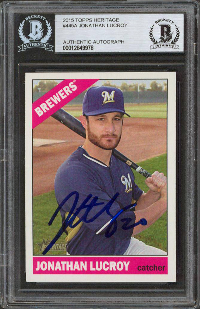 Brewers Jonathan Lucroy Authentic Signed 2015 Topps Heritage #445A Card BAS Slab
