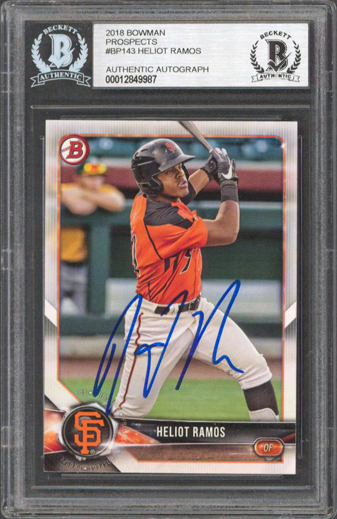 Giants Heliot Ramos Signed 2018 Bowman Prospects #BP143 Card BAS Slabbed