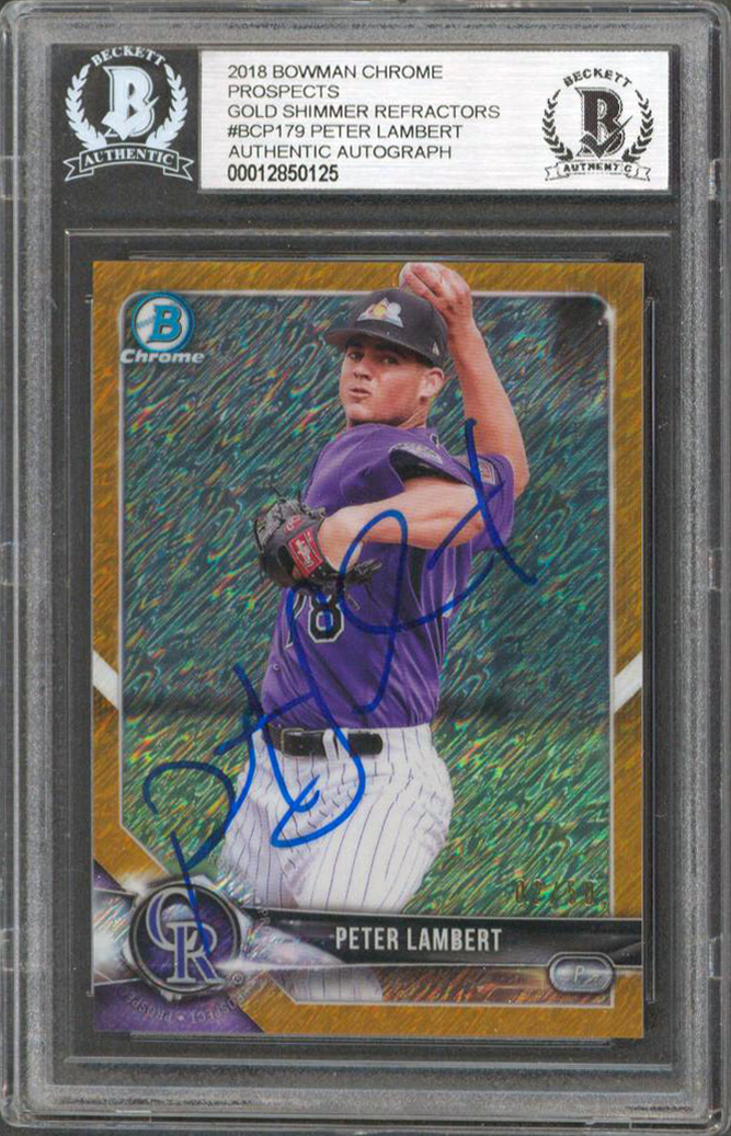 Peter Lambert Signed 2018 Bowman Chrome Prospects Gold Refractors Card BAS Slab
