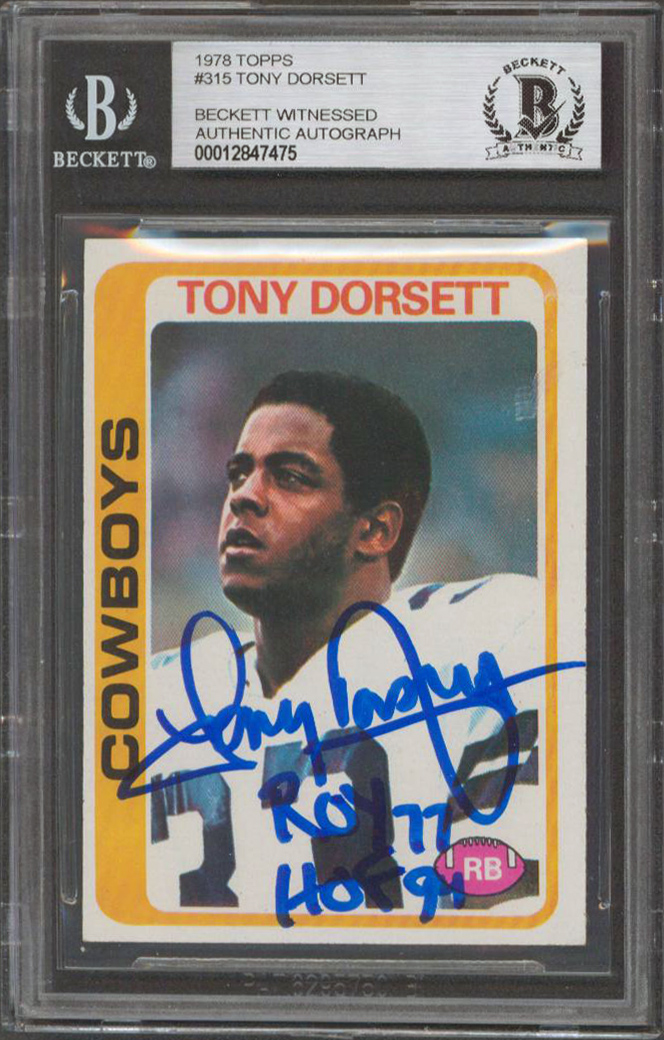Cowboys Tony Dorsett "ROY 77, HOF 94" Signed 1978 Topps #315 RC Card BAS Slab 4