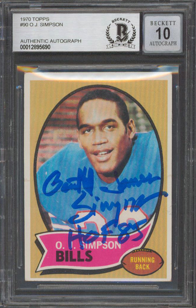 Orenthal James OJ Simpson HOF 85 Signed 1970 Topps #90 RC Card Auto 10 BAS Slab