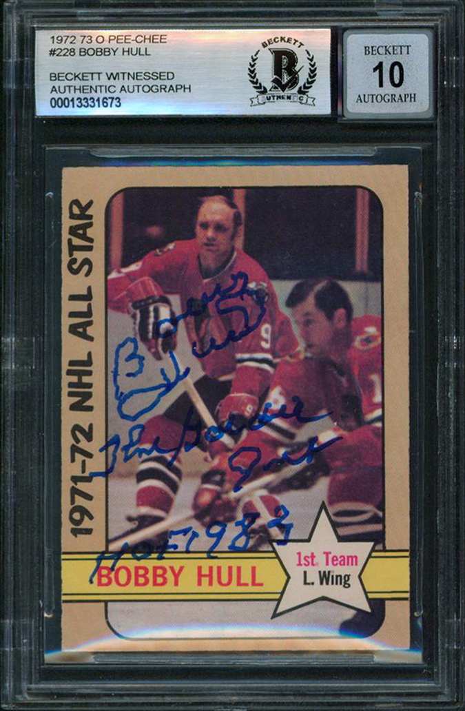 Blackhawks Bobby Hull 2x Insc Signed 1972 O-Pee-Chee #228 Card Auto 10 BAS Slab