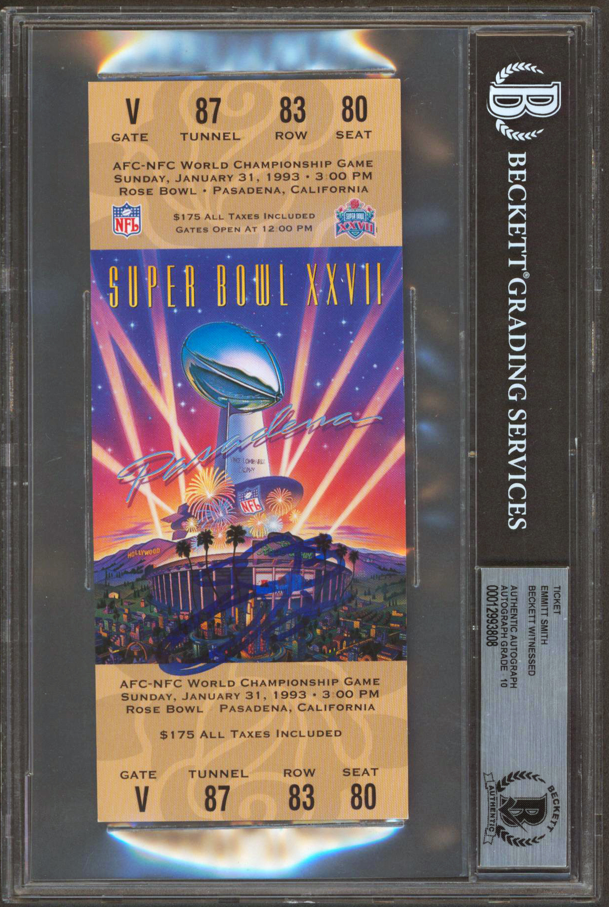 Cowboys Emmitt Smith Signed SB XXVII Replica Ticket Stub Auto 10! BAS Slabbed