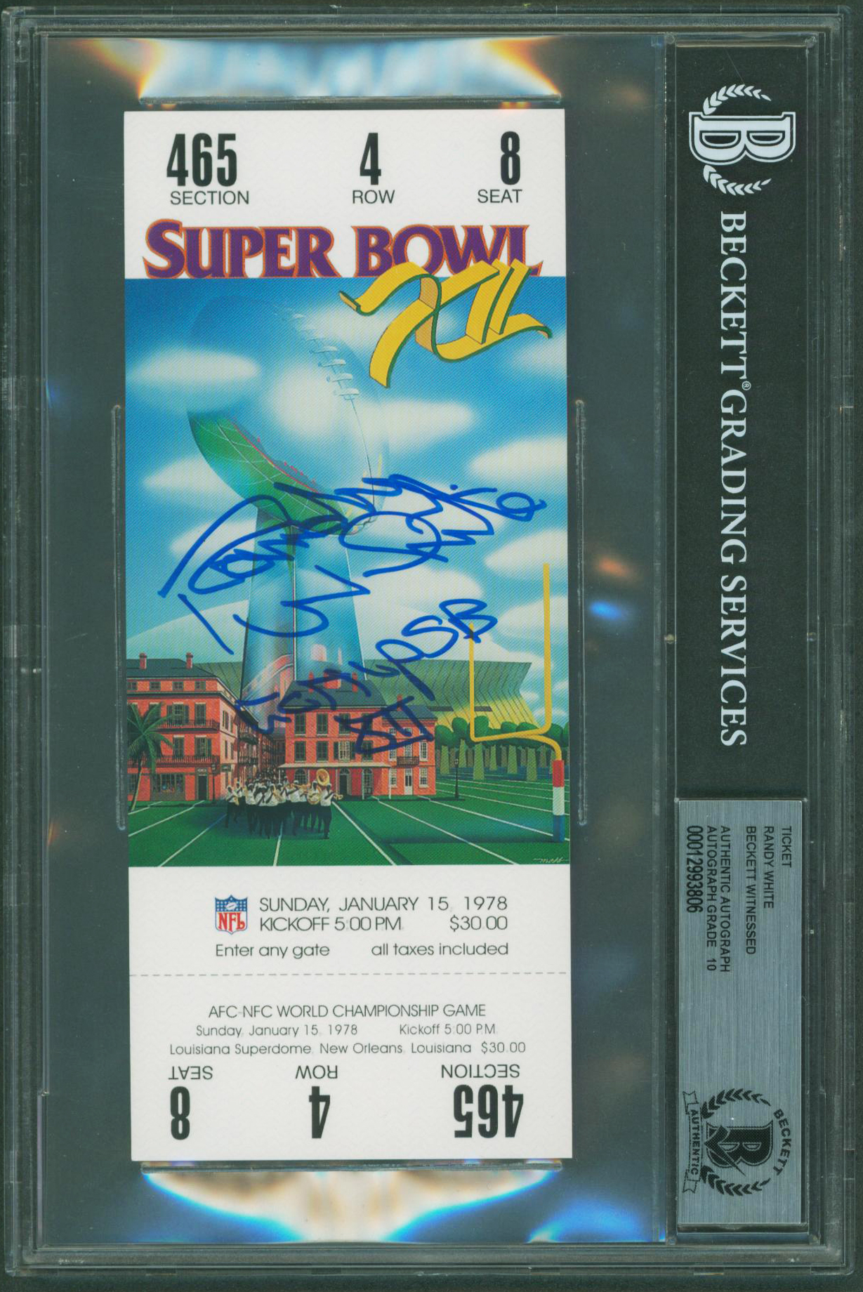 Randy White "COMVP SB XII" Signed SB XII Replica Ticket Stub Auto 10 BAS Slabbed
