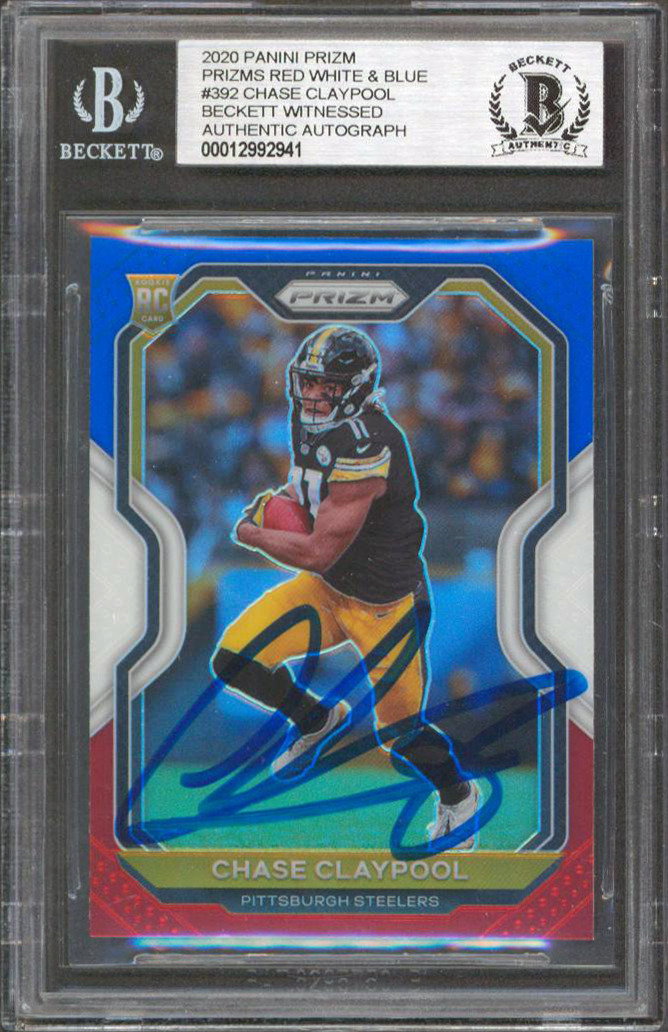 Chase Claypool Signed 2020 Panini Prizm Red White & Blue #392 RC Card BAS Slab