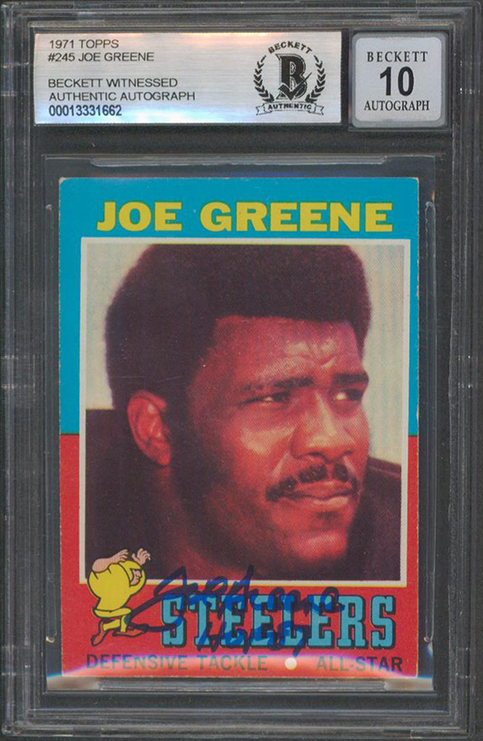 Steelers Joe Greene Signed 1971 Topps #245 Rookie Card Auto 10! BAS Slabbed 1