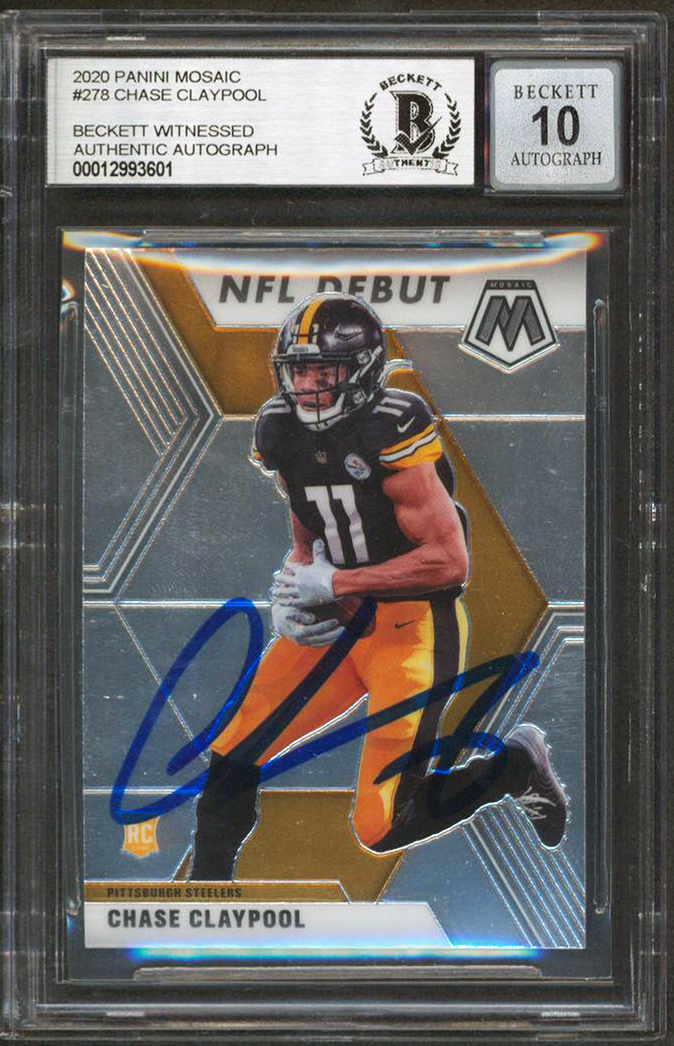 Chase Claypool Signed 2020 Panini Mosaic #278 Rookie Card Auto 10! BAS Slabbed