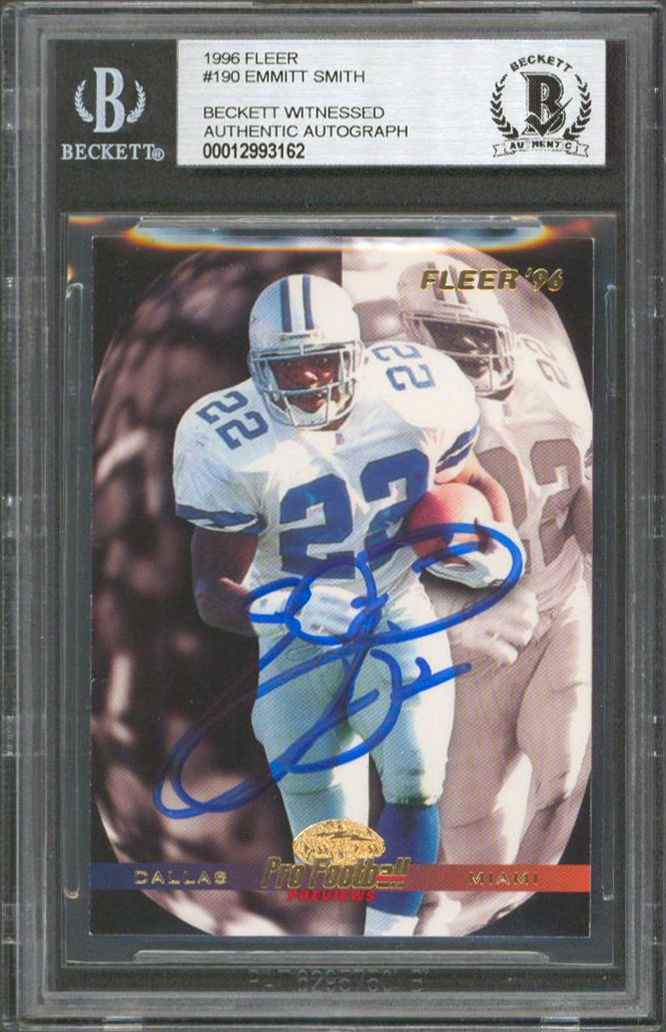 Cowboys Emmitt Smith Authentic Signed 1996 Fleer #190 Card BAS Slabbed
