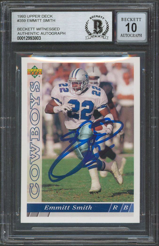 Cowboys Emmitt Smith Signed 1993 Upper Deck 359 Card Auto Graded 10! BAS Slabbed