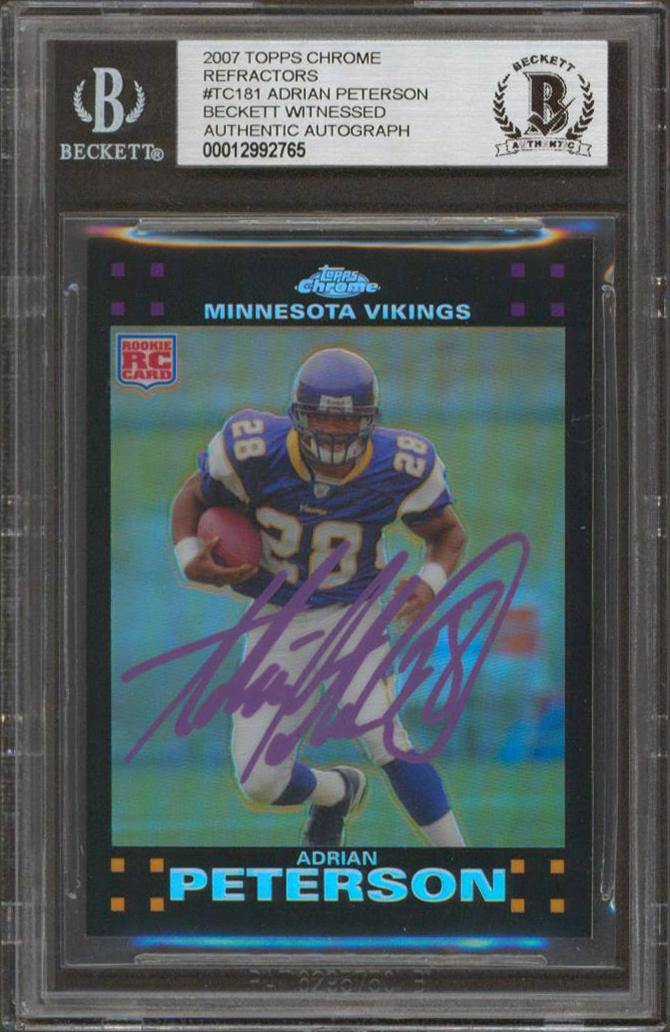 Adrian Peterson Signed 2007 Topps Chrome Refractors #TC181 RC Card BAS Slabbed 1