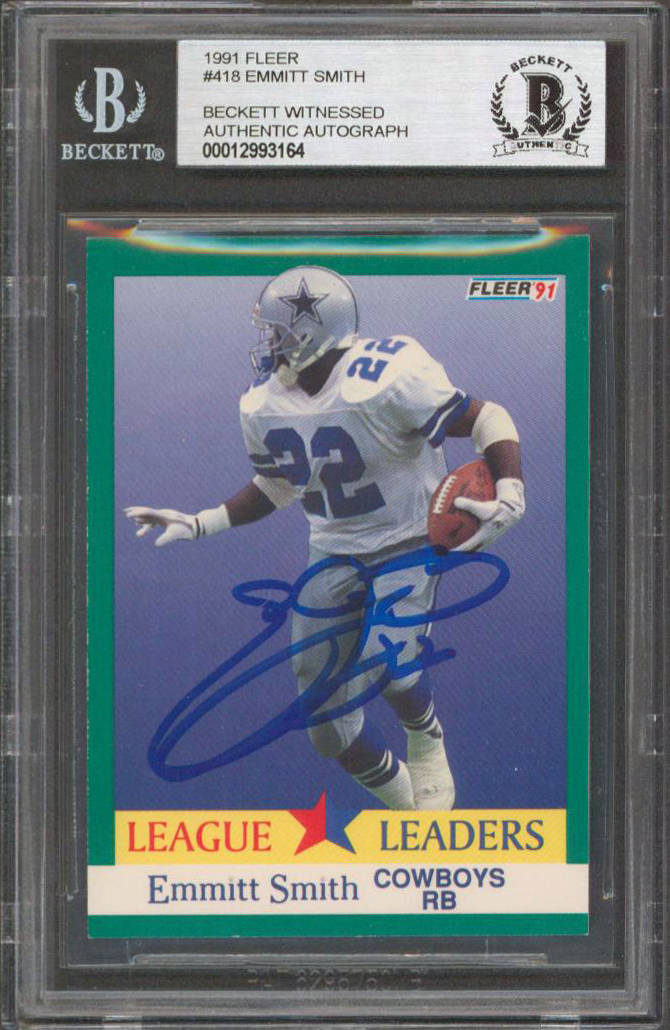 Cowboys Emmitt Smith Authentic Signed 1991 Fleer #418 Card BAS Slabbed