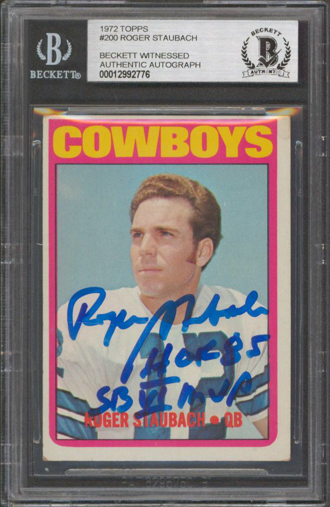 Cowboys Roger Staubach "2x Insc" Signed 1972 Topps #200 RC Card BAS Slabbed 2